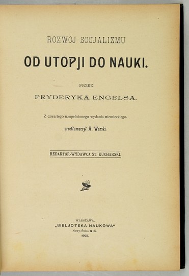 [oraz] ENGELS Fryderyk – Rozwój socjalizmu od utopji do nauki przez ... Z IV uzup. wyd. niemieckiego przetłumaczył A. Warski. 8, s. 95