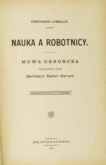 [oraz] LASALLE Ferdynand – Nauka a robotnicy. Mowa obrończa wypowiedziana przed Berlińskim Sądem Karnym. 8, s. 64