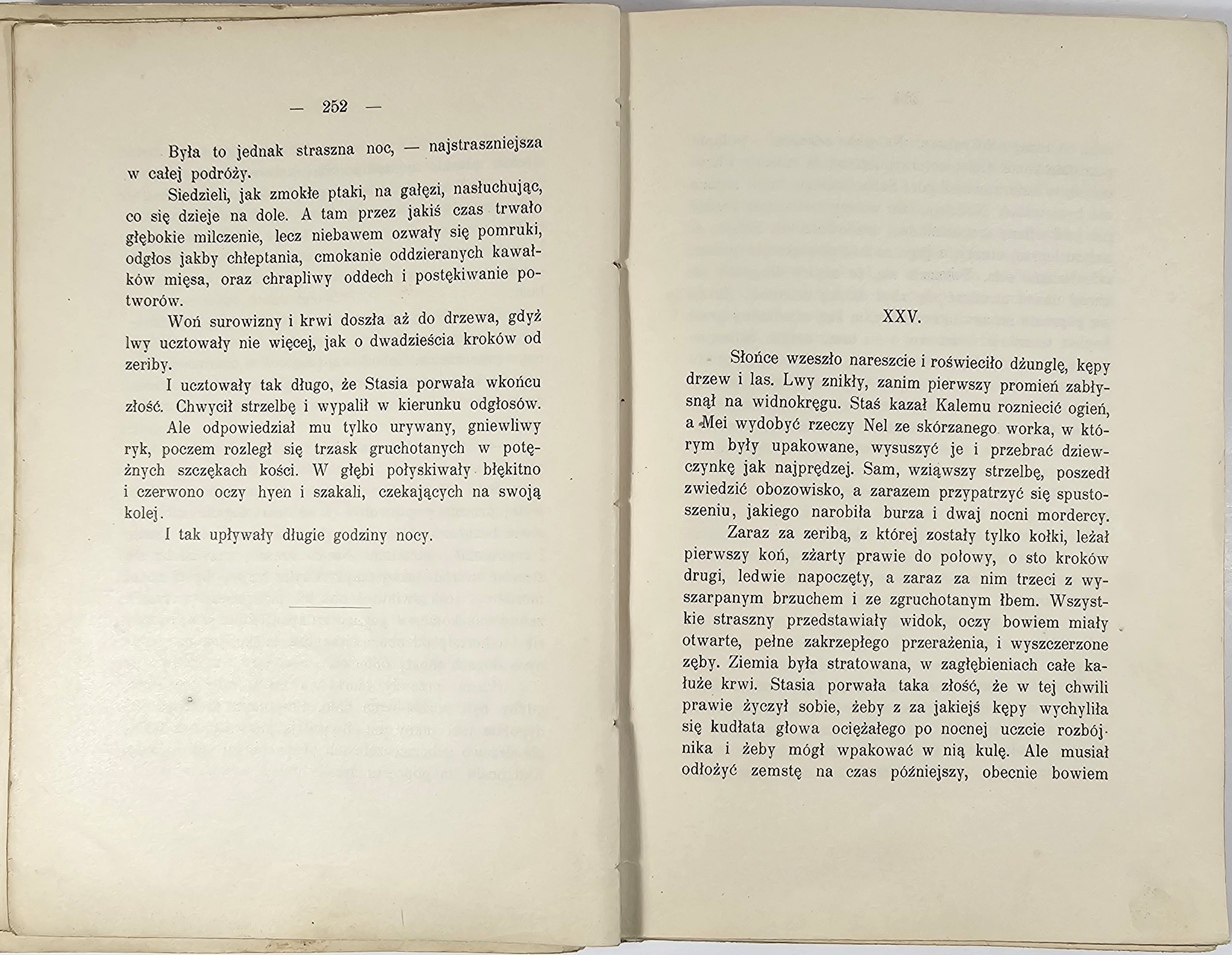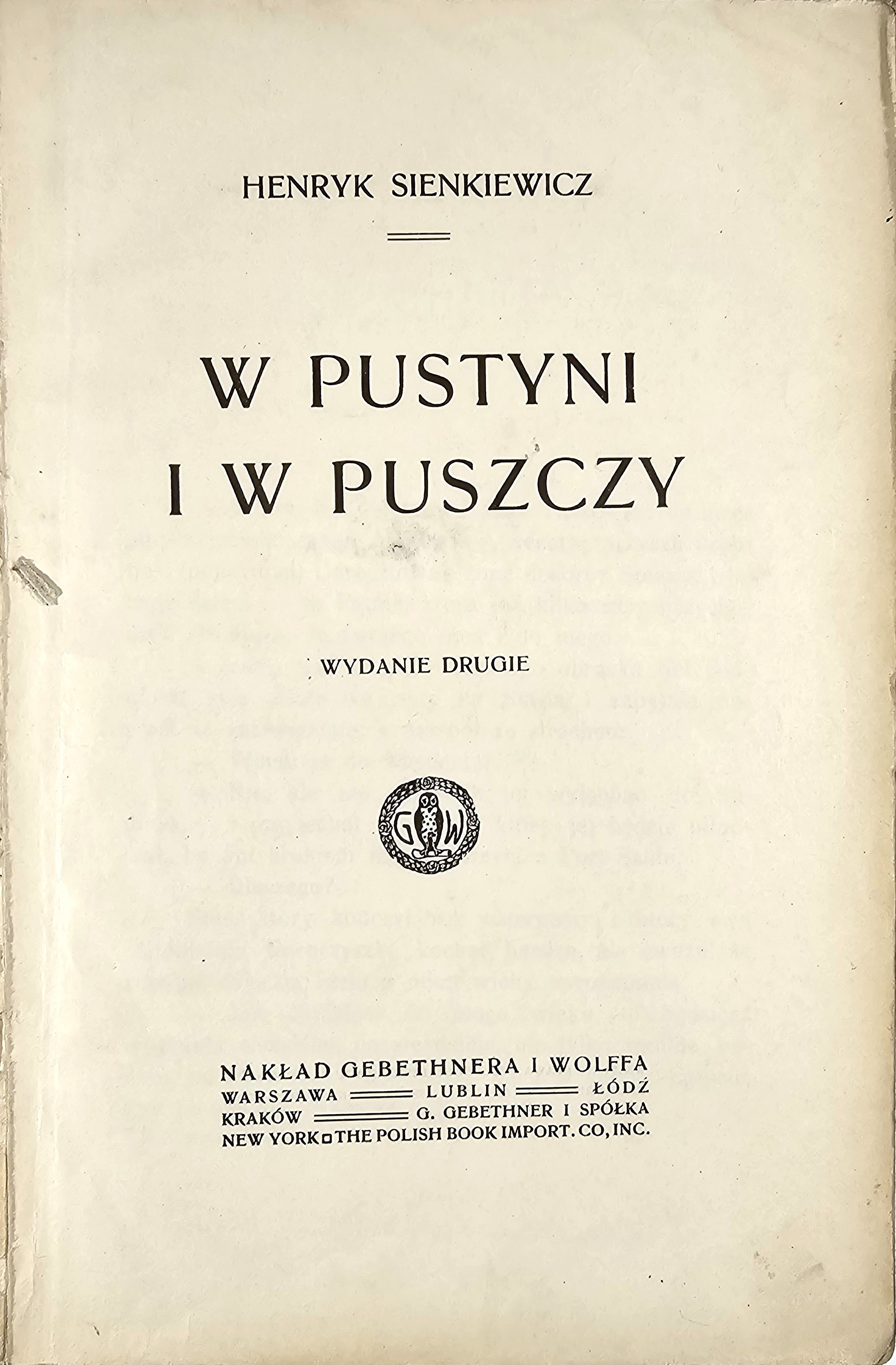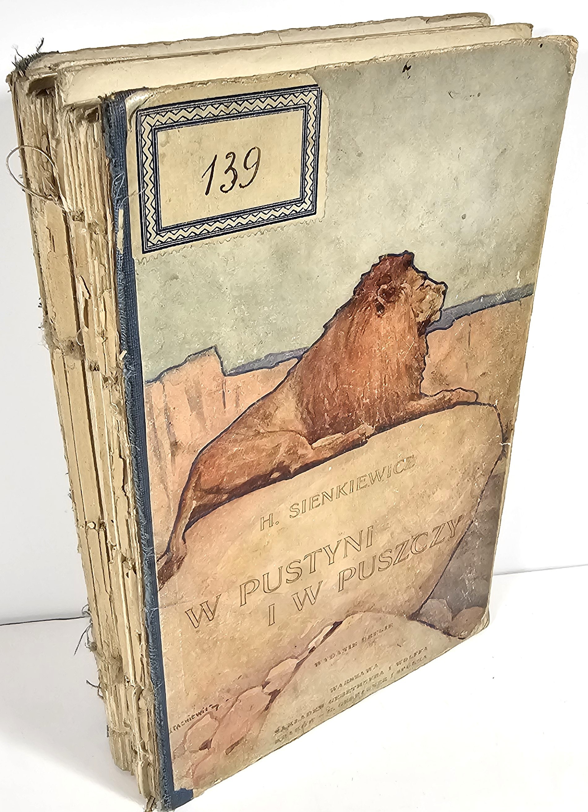Druk W.L. Anczyca, Kraków. 20 cm, s. [4], 504, opr. oryg. Ilustr. okł. proj. Piotr Stachiewicz. Oprawa mocno podniszczona: brak grzbietu, składki luźne, karty luźne, nalepka ewidencyjna na licu oprawy, pomimo to ilustracja okładkowa dobrze zachowana, zdecydowana większość kart czysta, nieliczne z niewielkimi zaplamieniami. Egzemplarz do naprawy dla profesjonalnego introligatora. Wydanie 2, jednej z najpopularniejszej powieści dla młodzieży H. Sienkiewicza.