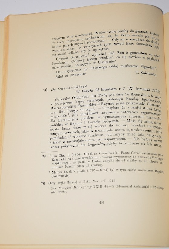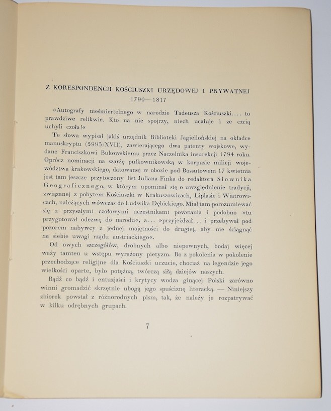 Odbitka z „Pamiętnika Biblioteki Kórnickiej”. Zbiór 120 listów Tadeusza Kościuszki z lat 1790-1817.