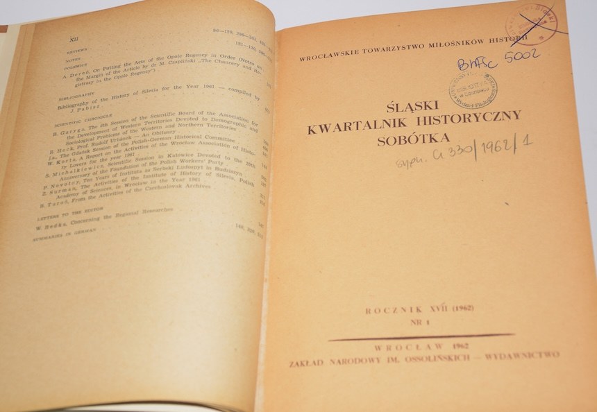 Śląski kwartalnik historyczny SOBÓTKA. Rocznik XVII (1962). Nr 1-4.