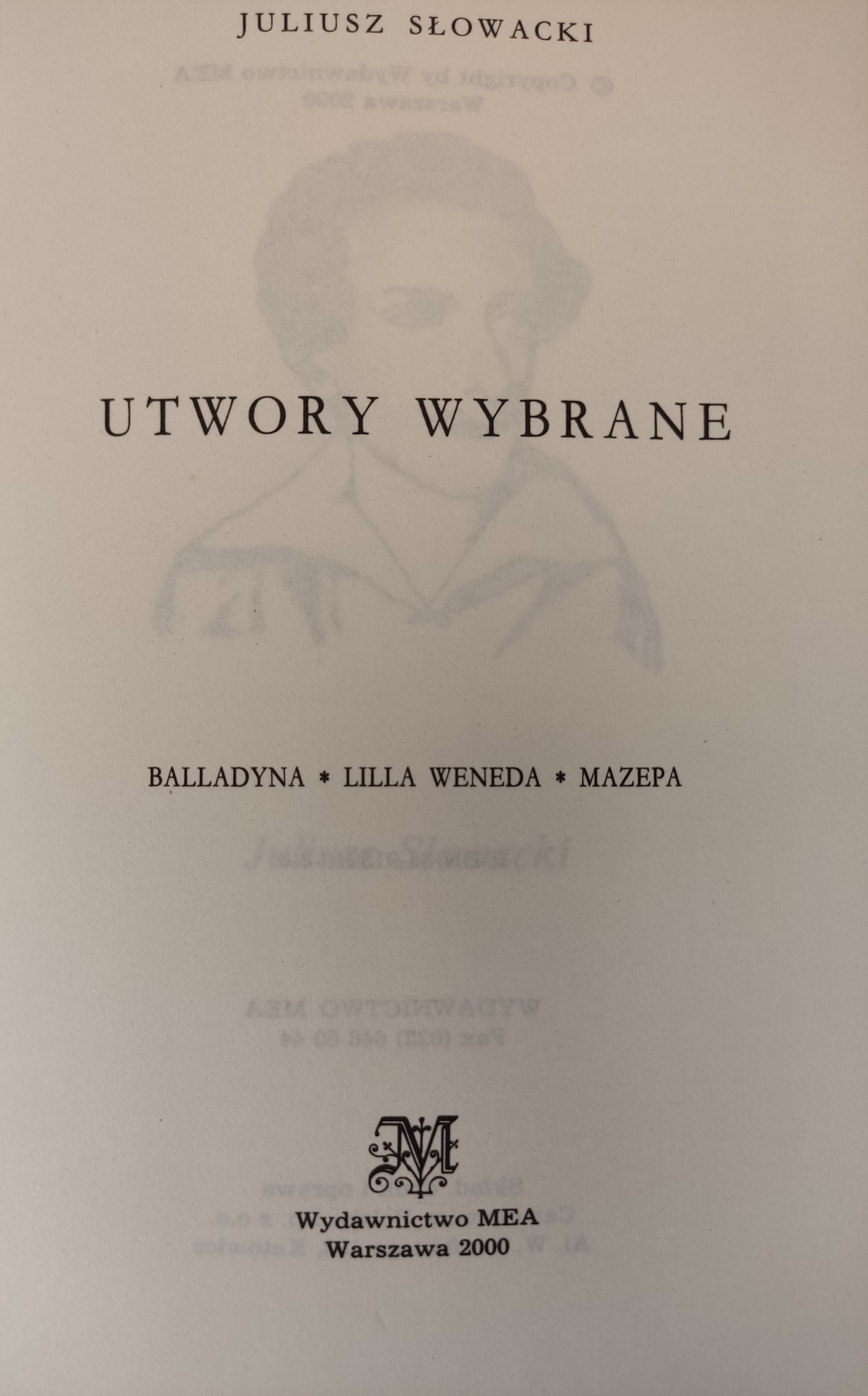 SŁOWACKI Juliusz - UTWORY WYBRANE: BALLADYNA. LILLA WENEDA. MAZEPA