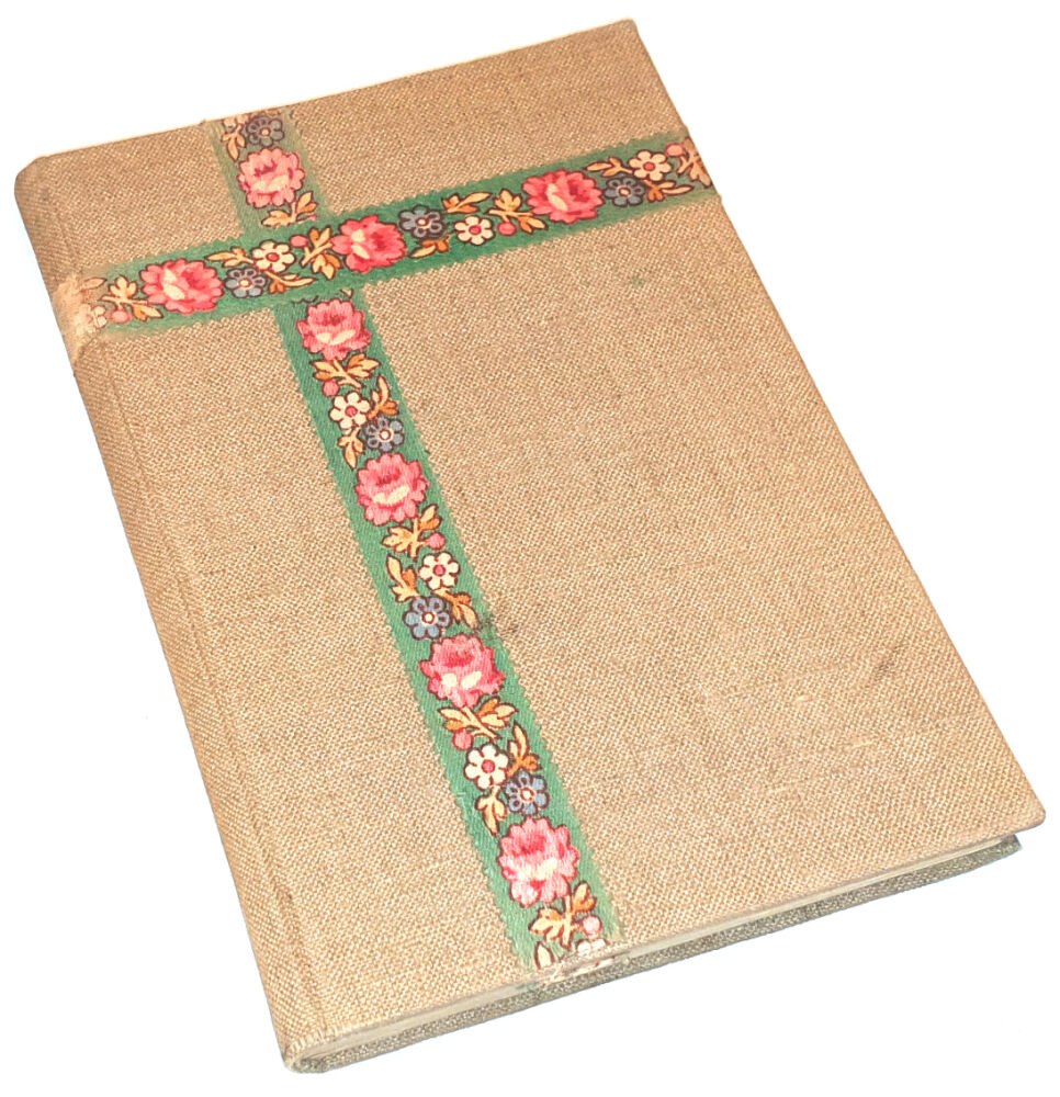 TWARDA OPRAWA PŁÓCIENNA Z EPOKI Z TZW. KRAJKĄ LUDOWĄ, GÓRNE OBCIĘCIE KART ZŁOCONE