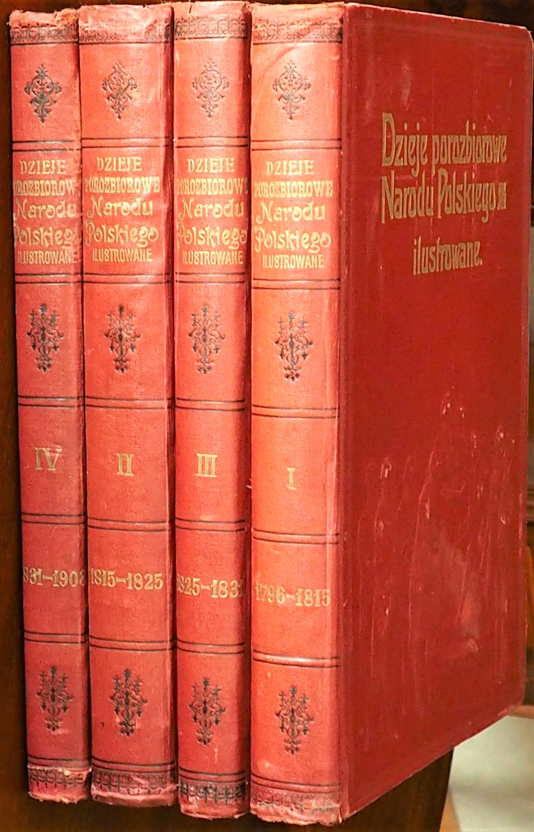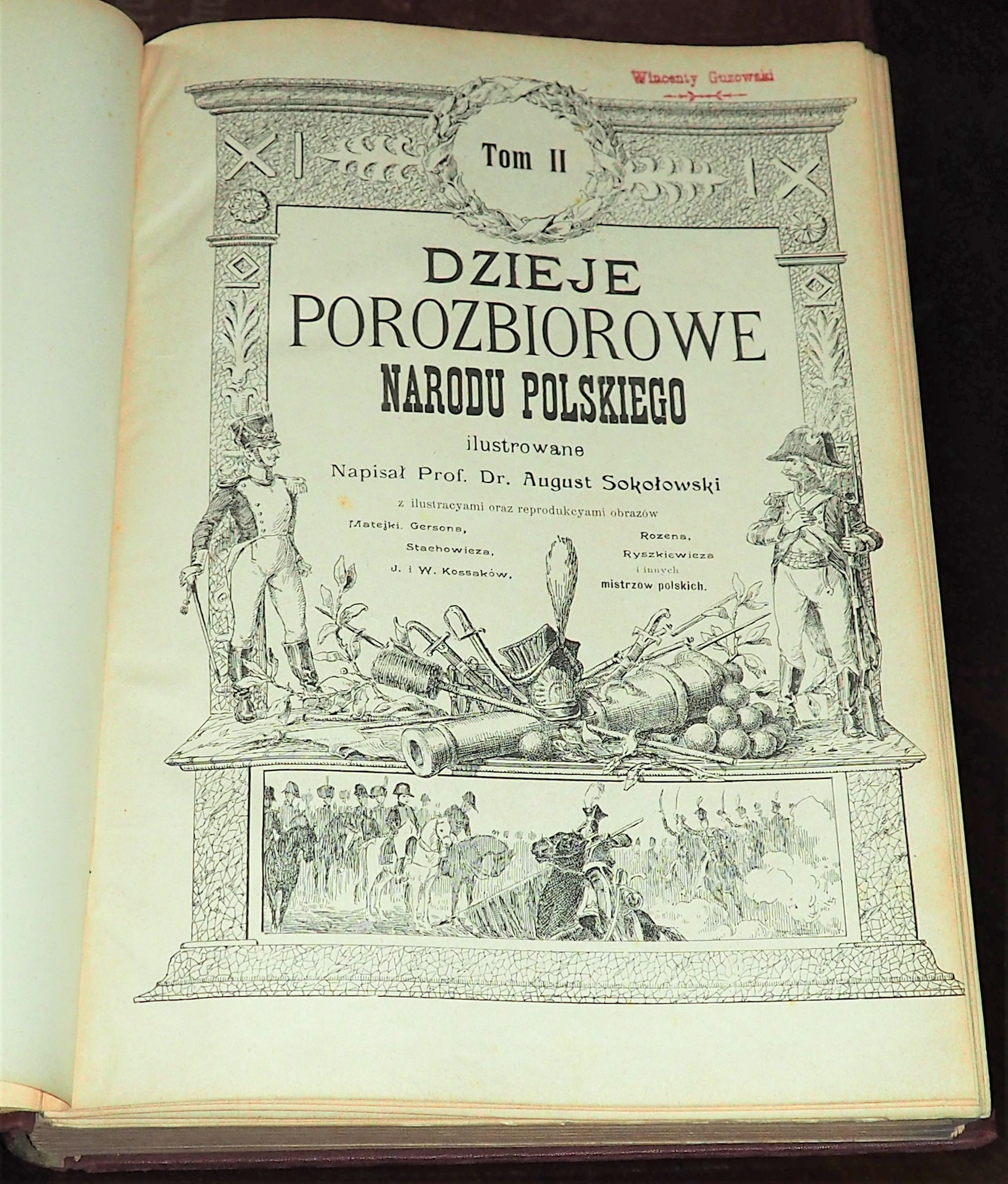 August Sokołowski, Dzieje porozbiorowe narodu polskiego ilustrowane, t. I – IV. Warszawa, 1901 – 1904. Brak roku wydania. Druk Piotra Laskauera.