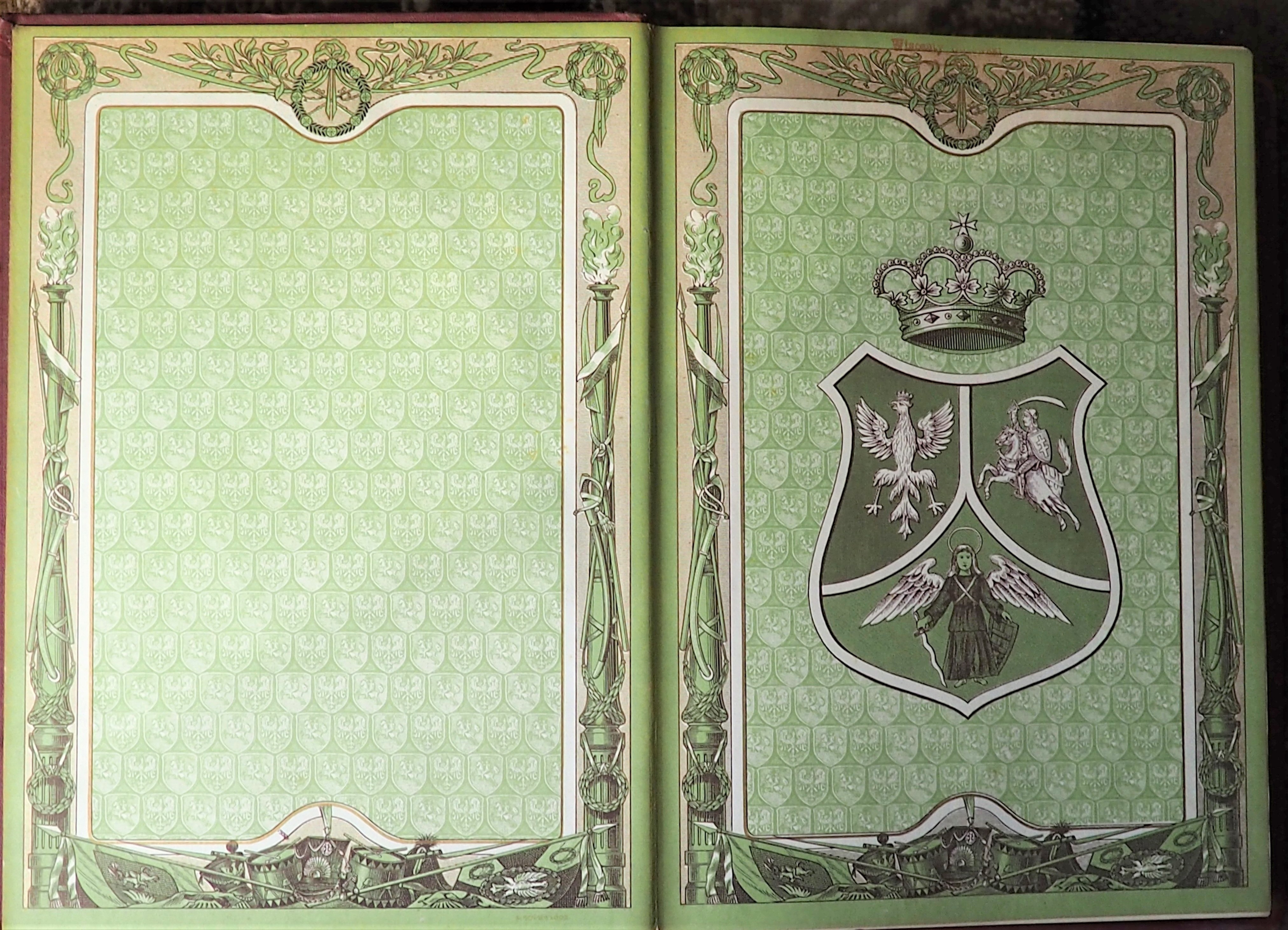 Format 34 x 23 cm. Ogromna ilość ilustracji, zdjęć i malarskich reprodukcji najwybitniejszych polskich malarzy (Matejko, Gerson, Stachowiak, Rosen, Kossakowie i in.).