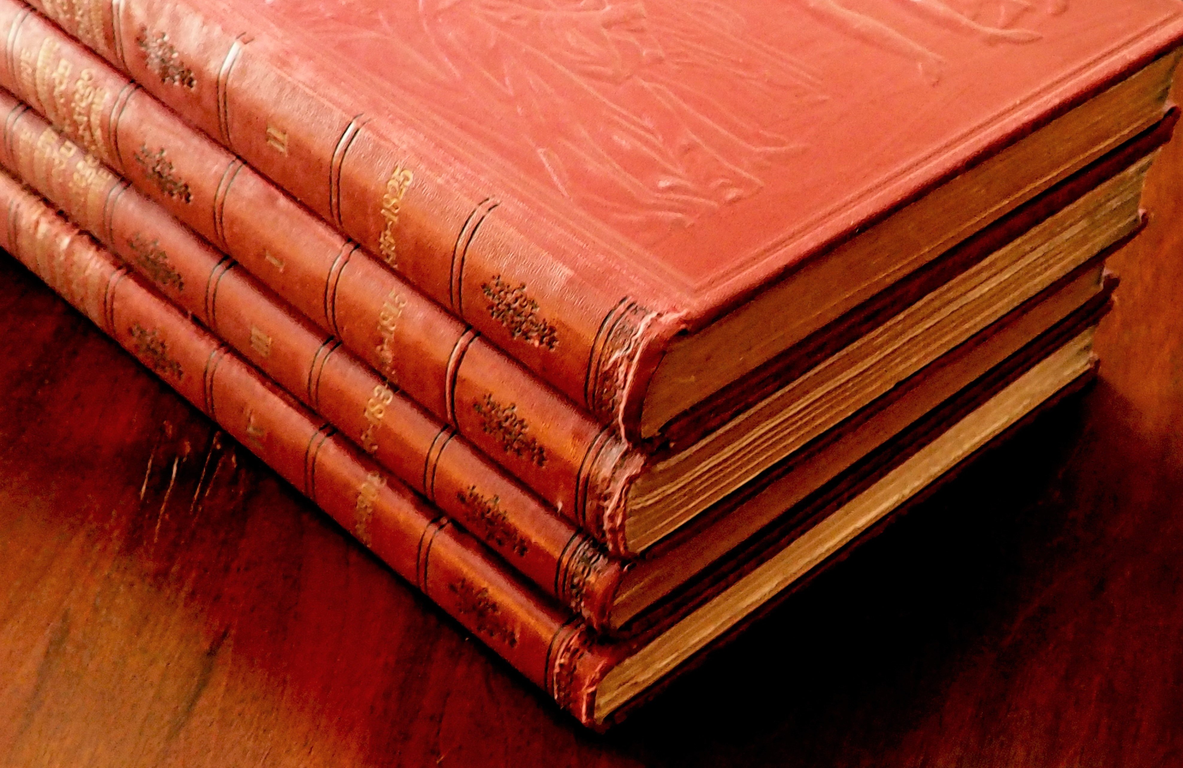 płócienne oprawy z tłoczeniami scen historycznych w jednolitym