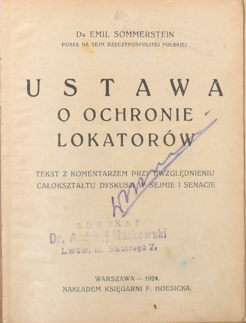 Tekst z komentarzem przy uwzględnieniu całokształtu dyskusji w Sejmie i Senacie. 16, s. 222, opr. ppł. z epoki. Na str. tytuł. podpis i pieczęć własnościowa, podkreślenia w tekście, poza tym stan dobry.