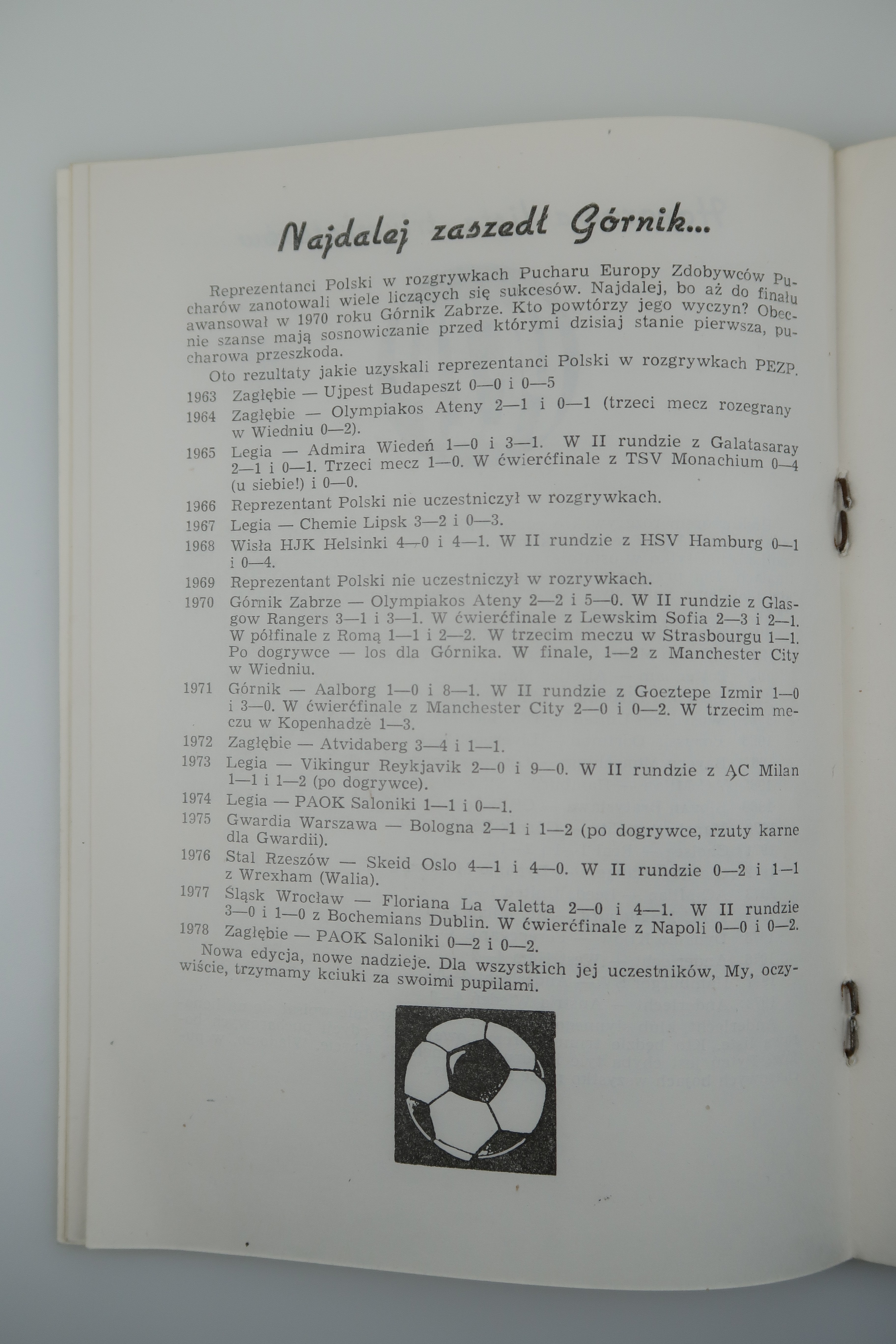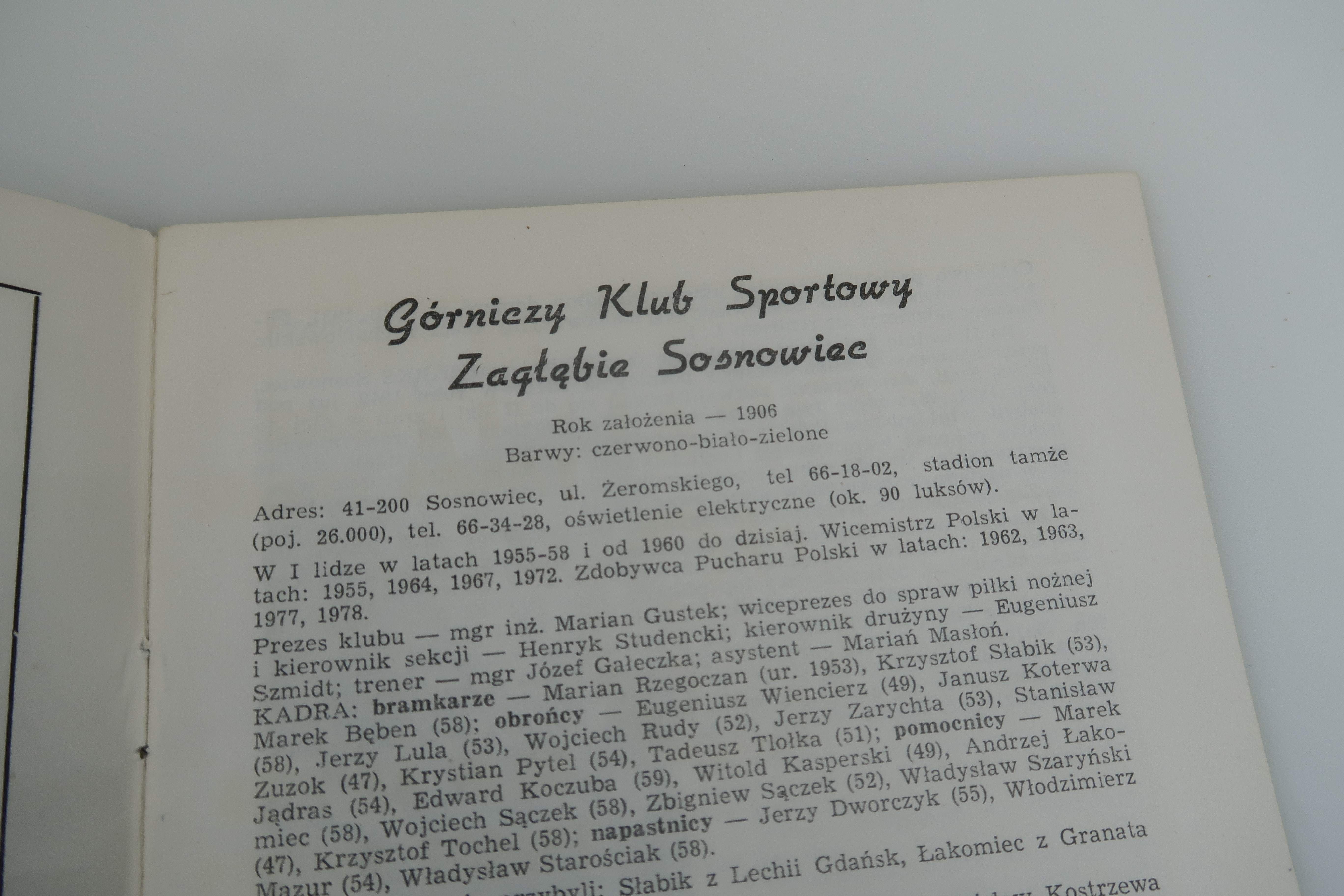Sosnowiec Stadion Ludowy, 13 IX 1978, Opolskie Zakłady Graficzne, s. 9, wym. 14,5 x 20, oprawa broszurowa.