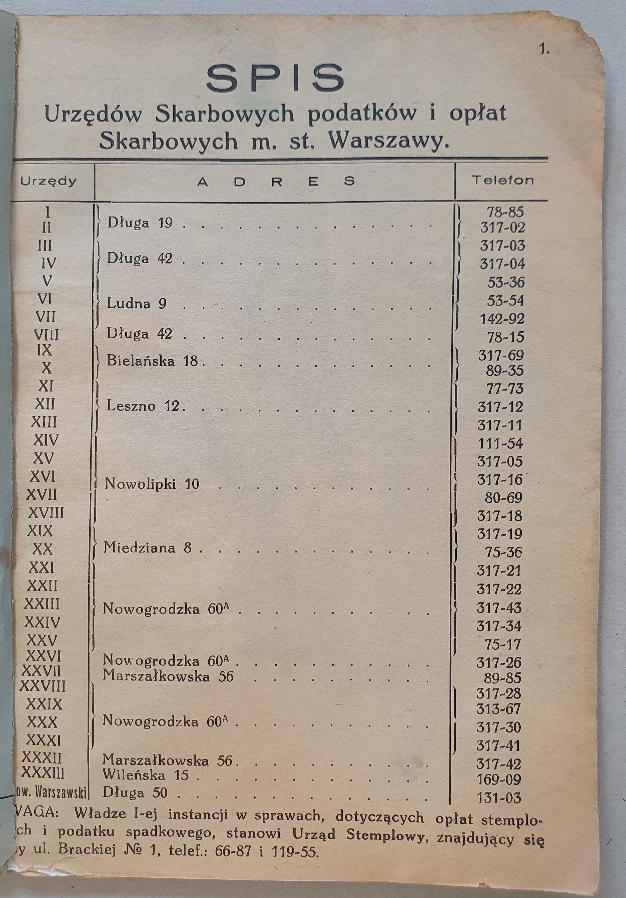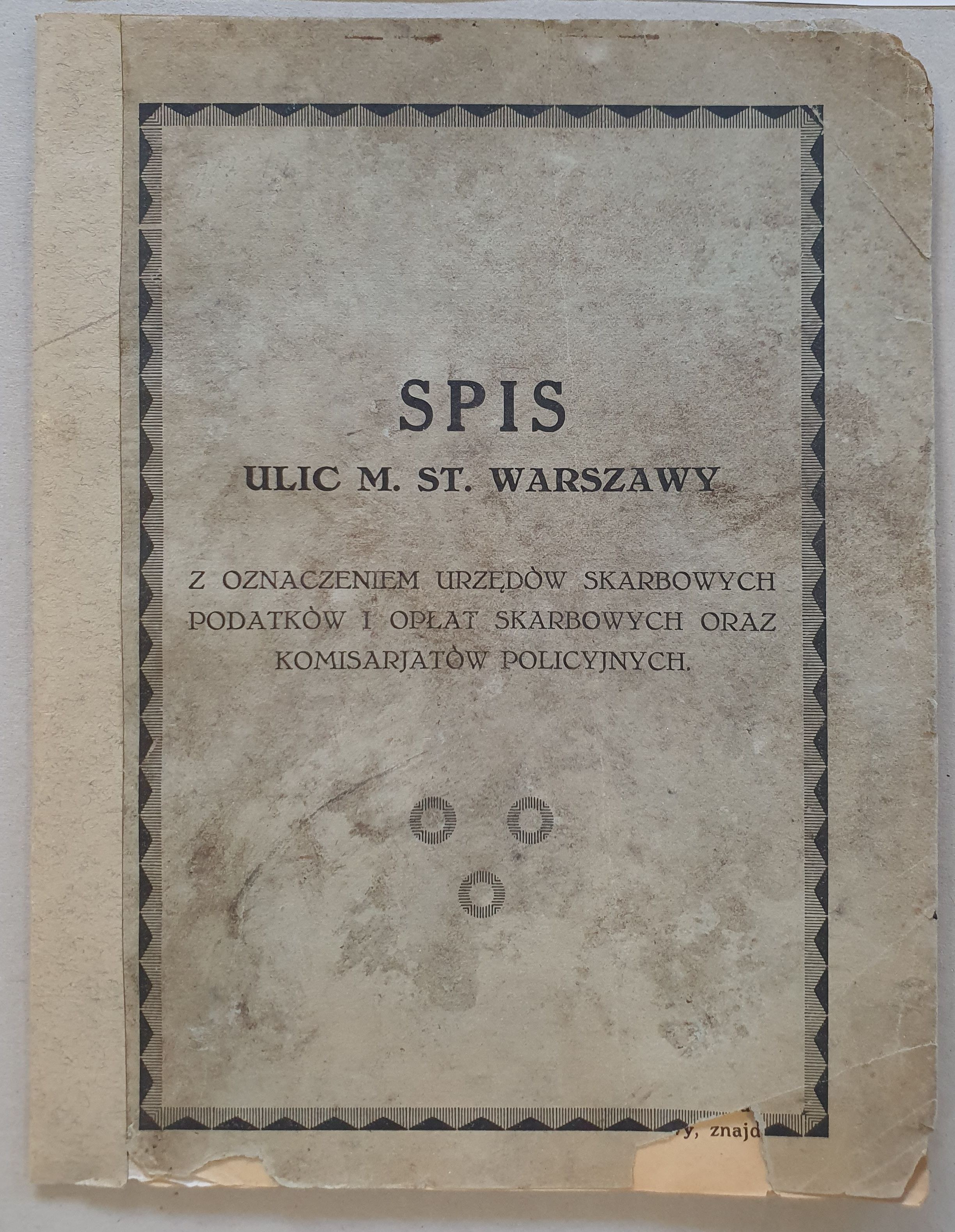 Spis ulic m.st. Warszawy z oznaczeniem urzędów skarbowych podatków i opłat skarbowych oraz komisarjatów policyjnych.
