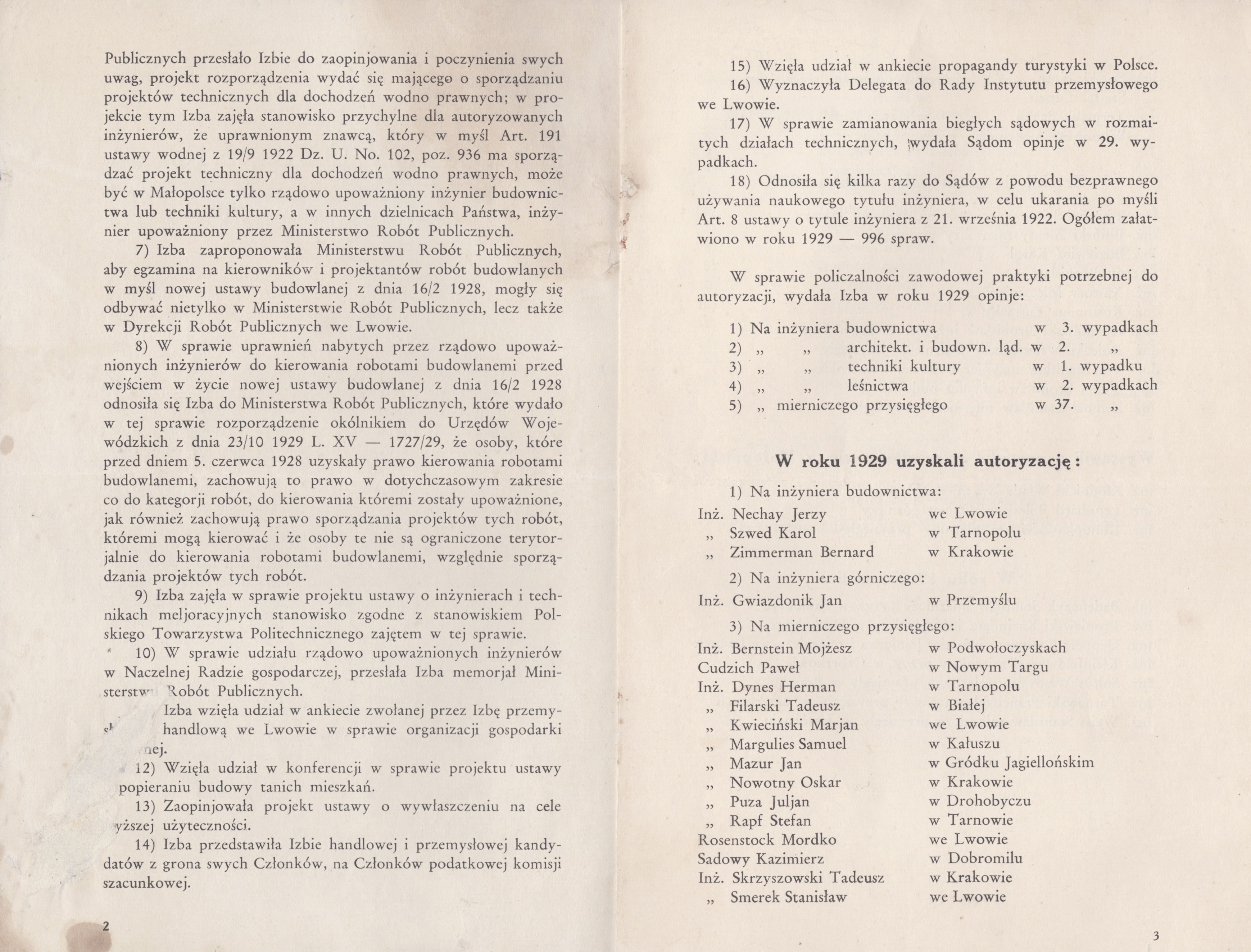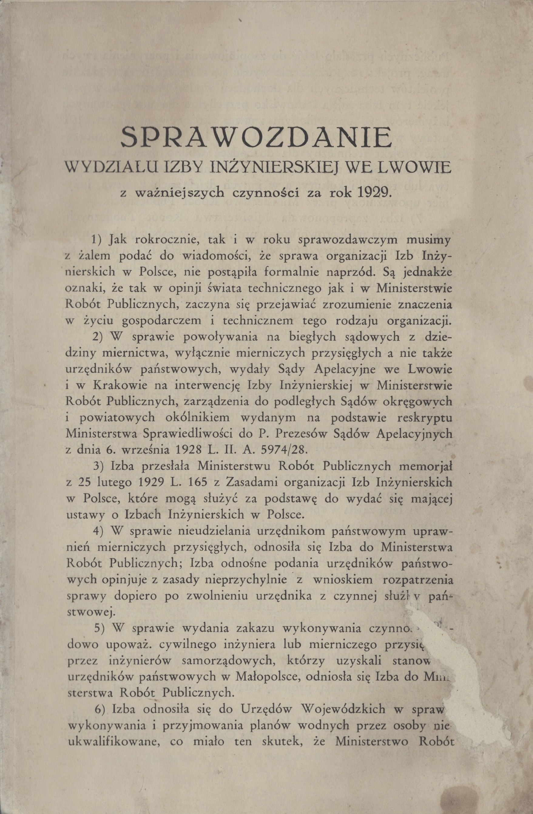 Sprawozdanie Wydziału Izby Inżynierskiej we Lwowie z ważniejszych czynności za rok 1929. [Lwów 1930]