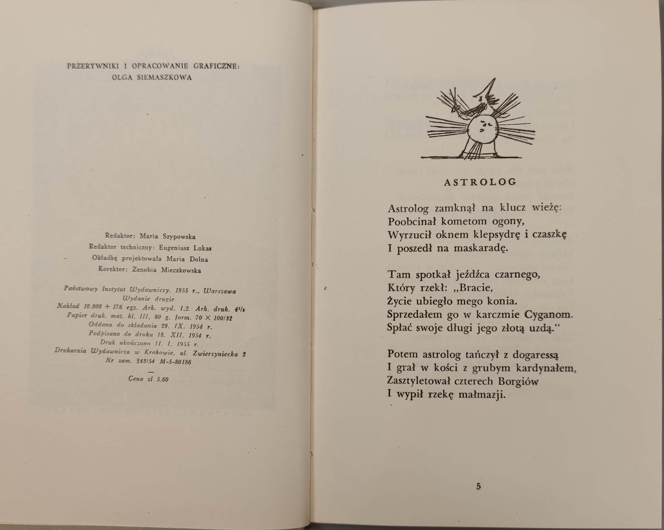 Przerywniki i opracowanie graficzne O. Siemaszkowa. Państwowy Instytut Wydawniczy. Warszawa 1955. Wydanie II. Wym. 18,5x12,5cm; stron 72. Oprawa płócienna(przybrudzenia-odbarwienia, nieznaczne otarcia). Okładkę projektowała M. Dolna. Notatka ołówkiem na ostatniej stronie spisu treści.
