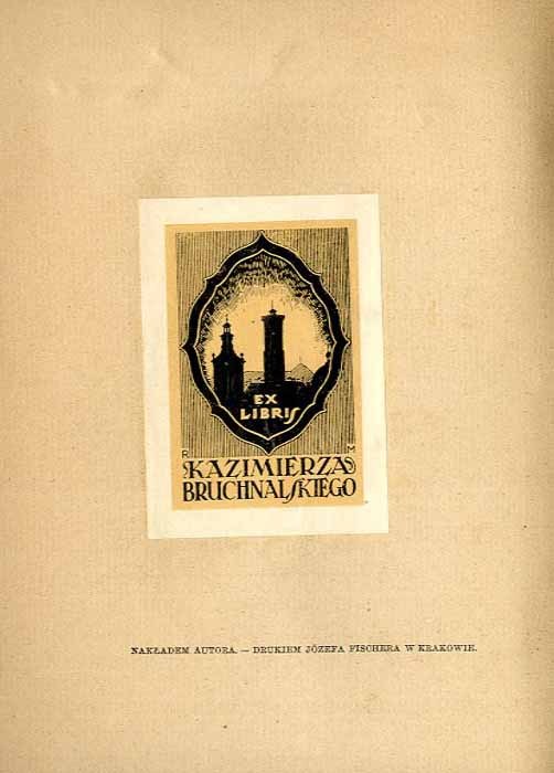 Uwagi: Okładka niesygnowana. Na stronie verso karty tytułowej ekslibris Kazimierza Bruchnalskiego autorstwa Rudolfa Mękickiego (cynkografia barwna z widokiem Lwowa, sygnowana: "R M").