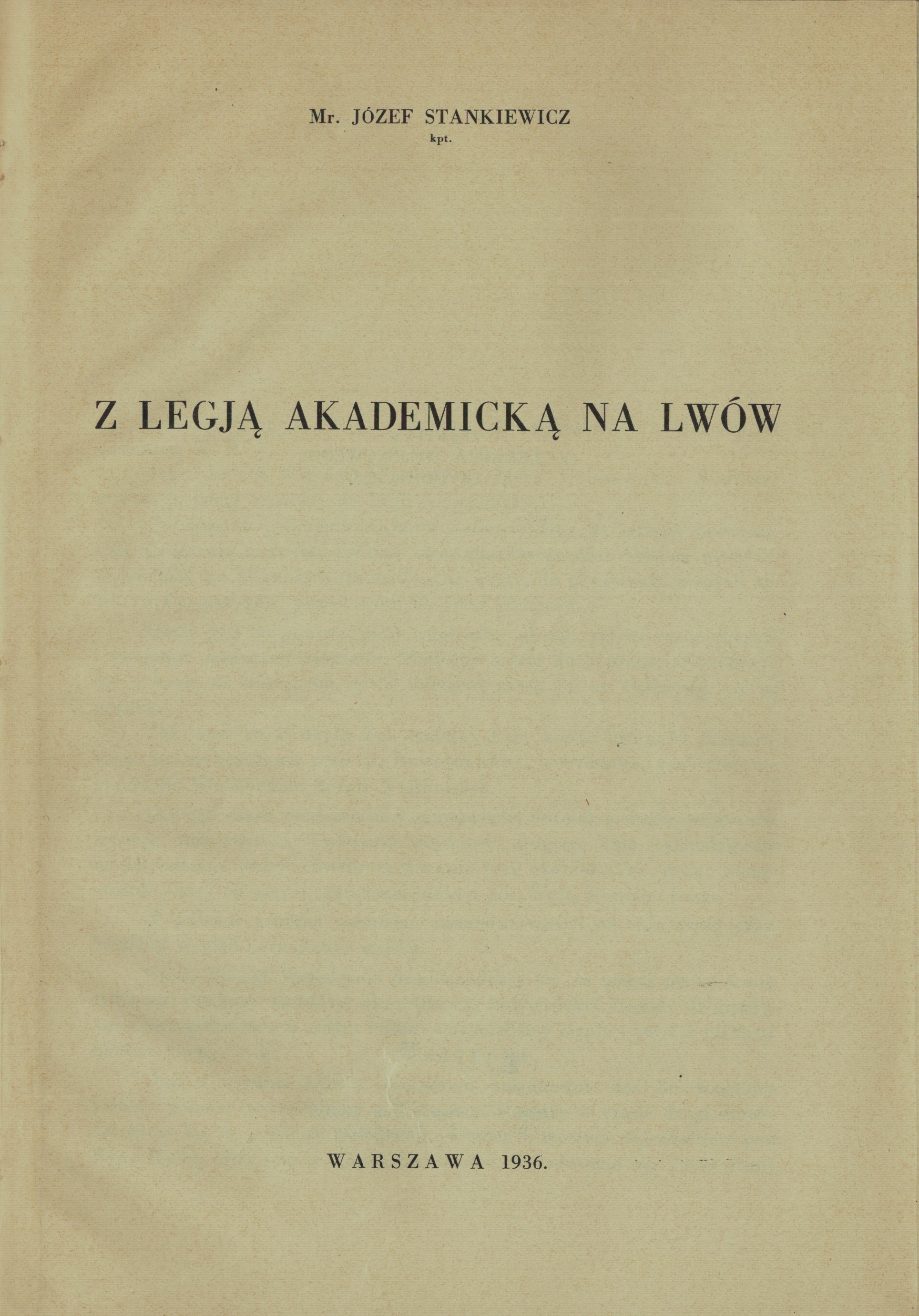 STANKIEWICZ Józef kpt - Z Legią Akademicką na Lwów. Warszawa 1936. Druk i Litogr. "Jan Cotty" w Warszawie.