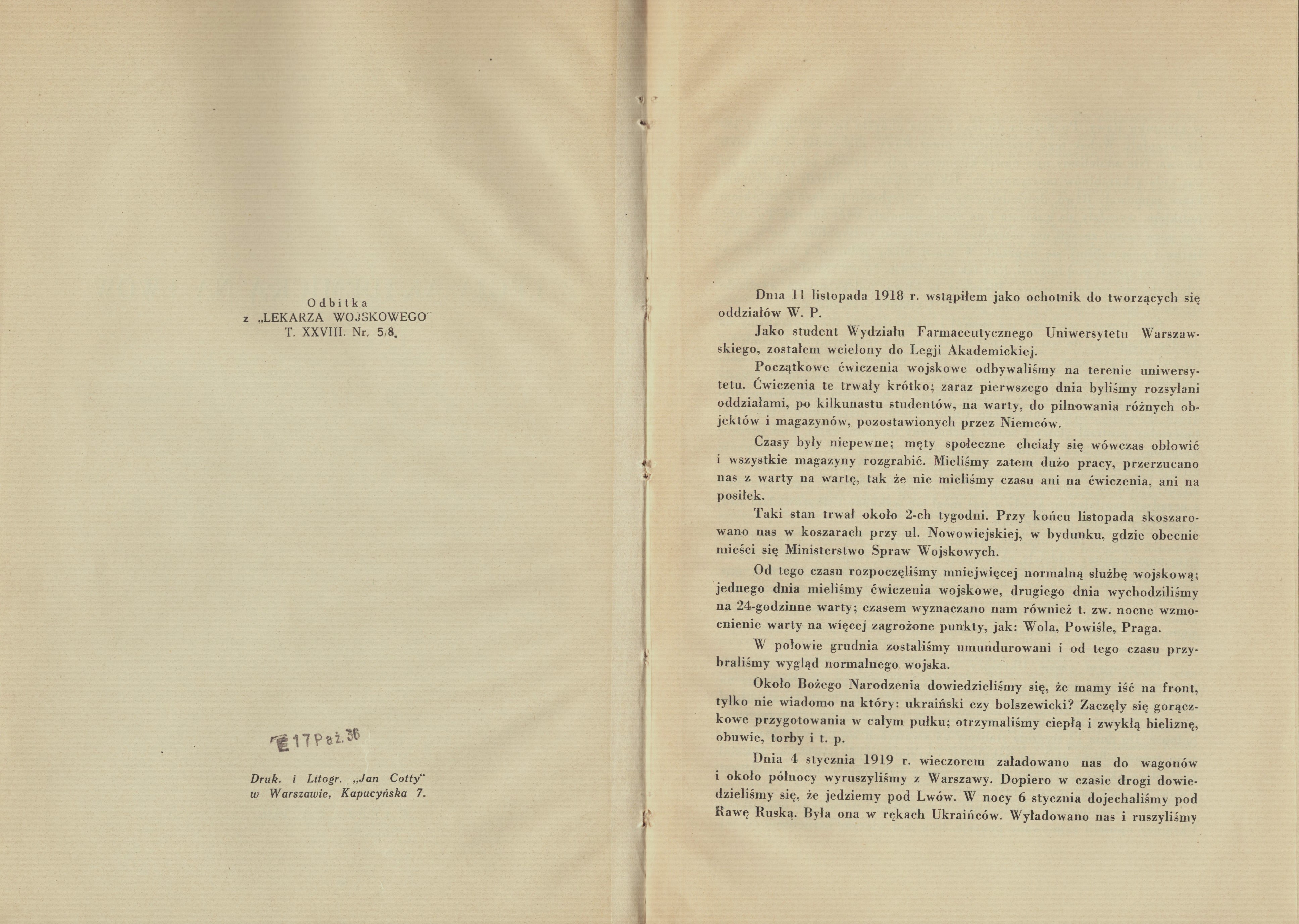 Odbitka z "Lekarza Wojskowego" T. XXVIII. Nr. 5/8.