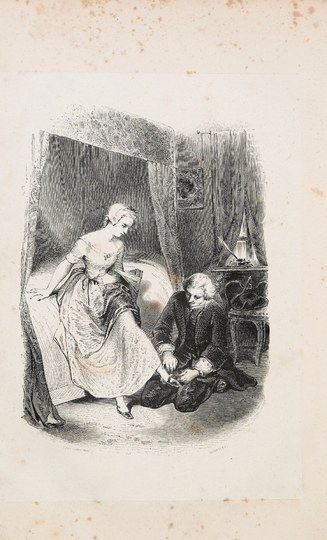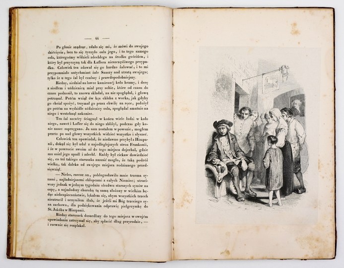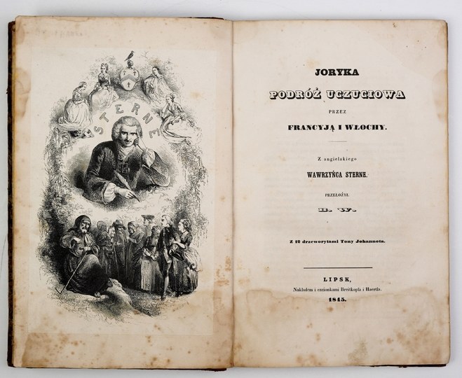 STERNE Laurence - Joryka podróż uczuciowa przez Francyją i Włochy. Z angielskiego Wawrzyńca Sterne przełożył B. W. [krypt. Bogumił Wisłocki]. Z 12 drzeworytami Tony Johannota. Lipsk 1845. Nakł. i czcionkami Breitkopfa i Haertla. 4, s. 136, tabl. 12. opr. psk. z epoki.