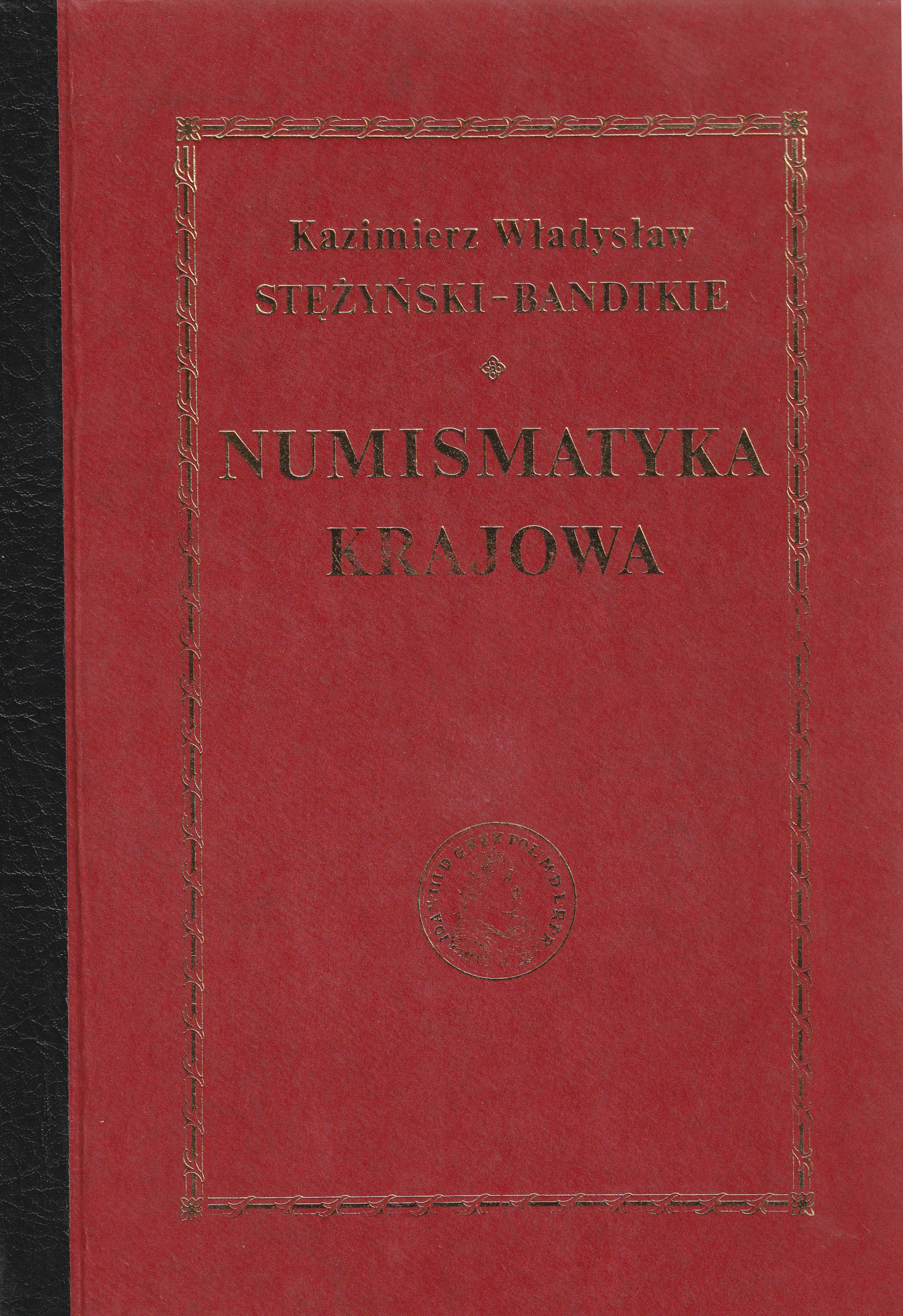 STĘŻYŃSKI-BANDTKIE Kazimierz. Numismatyka Krajowa, tom I-II, Warszawa 1839-40 (w jednej oprawie), Wydawnictwa Artystyczne i Filmowe, Warszawa 1988, T. I: str. 159+IX+ tab. A-E+ tab. 35; T. II: str. 128+XII+IX+ tab 3-65; oprawa twarda skórzana, ze złotym napisem na przedniej okładce i grzbiecie, st. bdb.; 180x250 mm.
