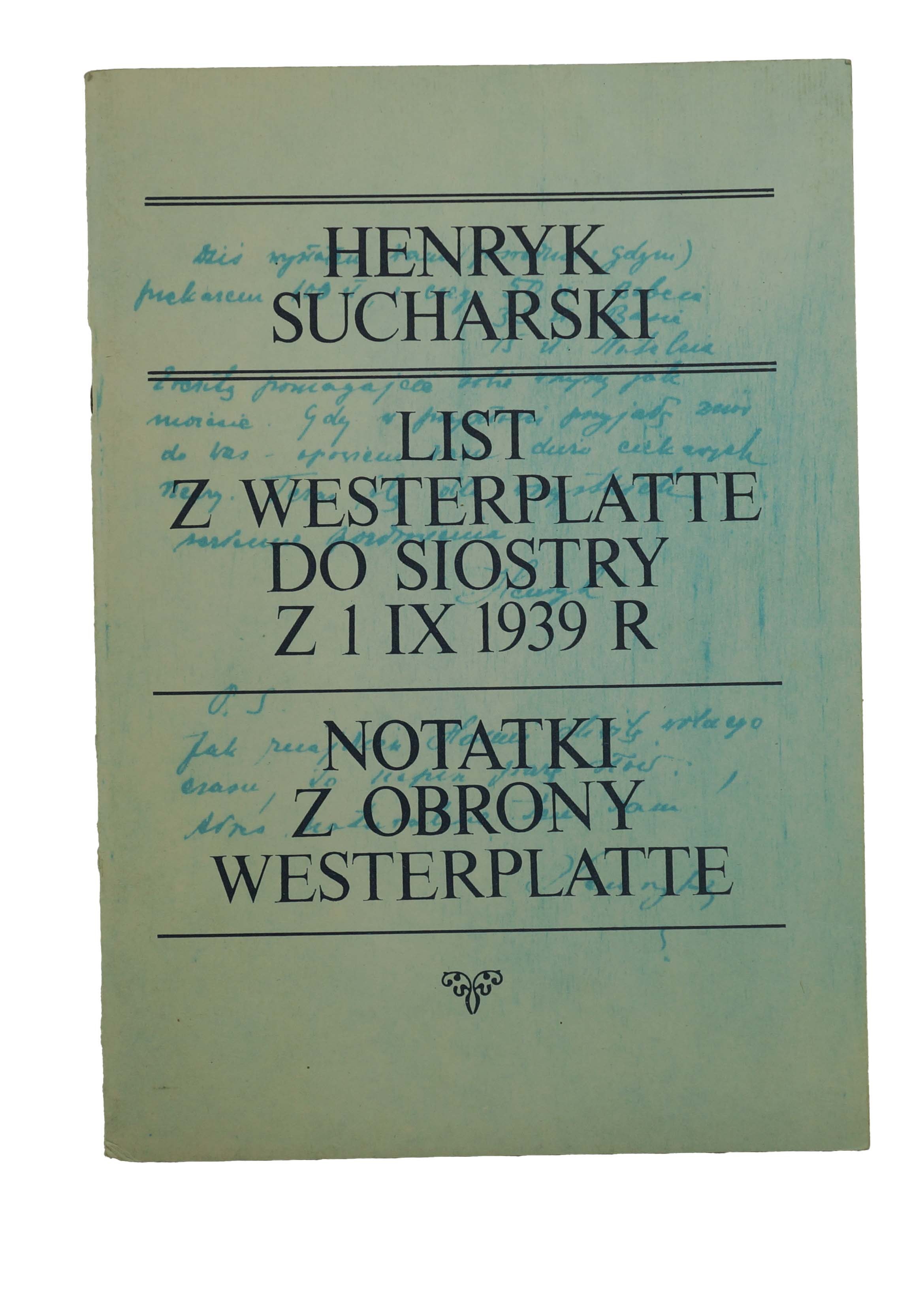 List z Westerplatte do siostry z 1.IX.1939r. Notatki z obrony Westerplatte - Henryk Sucharski, wstęp i opracowanie Z. Lidia Pszczółkowska, Gdańsk 1989, f. 14x20cm, s. nlb. 28