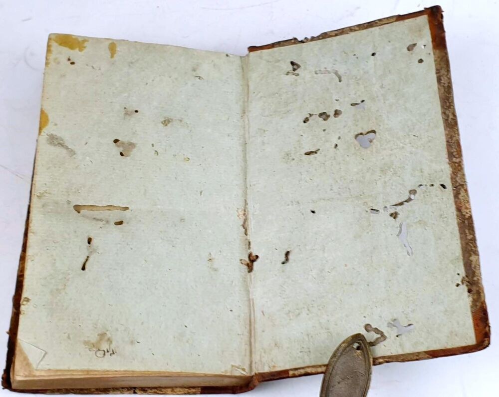 Stan DB-/oprawa podniszczona, ślady owada na okładce i kartach, wpis na k. tyt