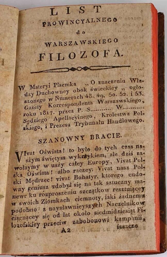 "Kiedy w r. 1810 ukazała się broszurka: O znaczeniu władzy duchownej obok świeckiej – ogłoszona w Nr. 48, 49, 50, 52, 53 "Gazety Korrespondenta Warszawskiego" 1817 przez P. S. (czyżby Potocki Stanisław?), w której autor dowodził wyższości władzy świeckiej nad duchowną, odpowiedział Surowiecki broszurą: List prowincjonalnego do Warszawskiego Filozofa – w Wilnie 1817, zbijając błędy, w tamtej broszurze zawarte, a w następnym roku ogłosił książkę: Eklektyk zimnokrwisty Filozof stawający w charakterze Pośrednika ku ukończeniu morderczej walki między dwiema zapalonymi Logikami: Perypatetykiem pod imieniem Wiejskiego Plebana, i Neoterykiem pod tytułem "Kopernikowego Rywala". Przez W. P. M. N. N. Roku 1818; książka zajmuje się odparciem tezy, że władza świecka wyższa od duchownej..." Źródło: ultramontes.pl