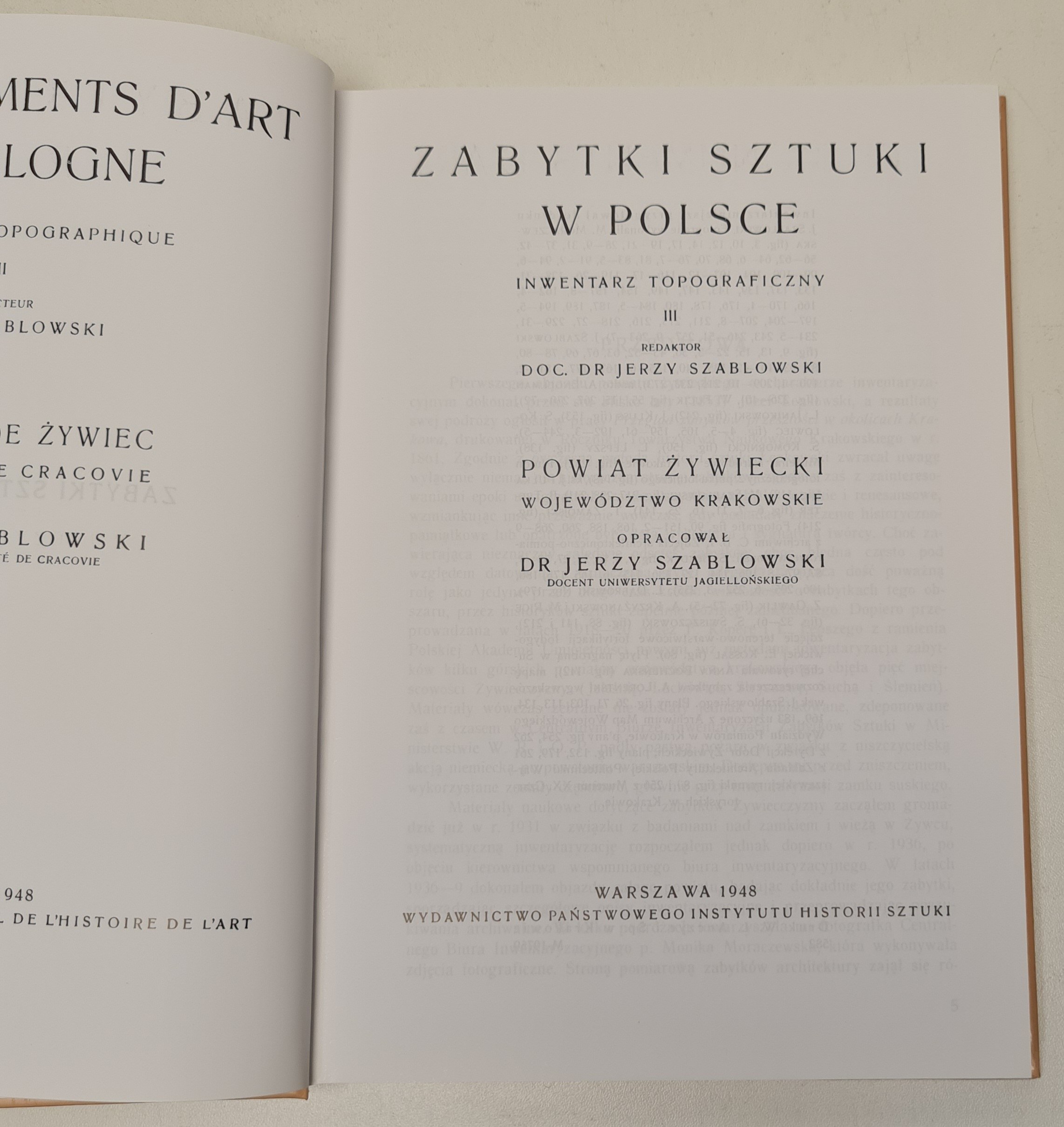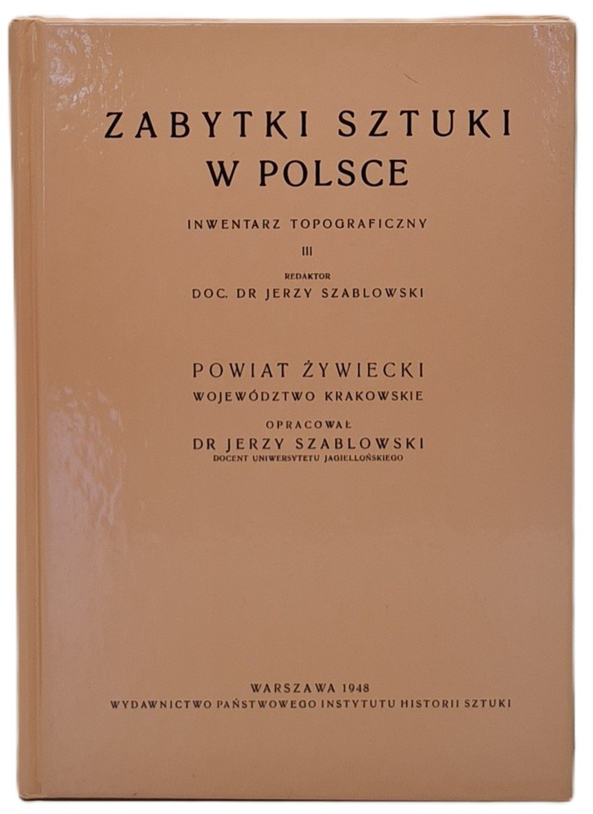 Szablowski Jerzy - Zabytki Sztuki W Polsce Inwentarz Topograficzny Tom III Powiat Żywiecki Województwo Krakowskie. Reprint z 1948 roku, Instytut Sztuki Polskiej. Wym17x24cm. s. 309, 6*. Oprawa wydawnicza kartonowa. Stan zachowania bdb.