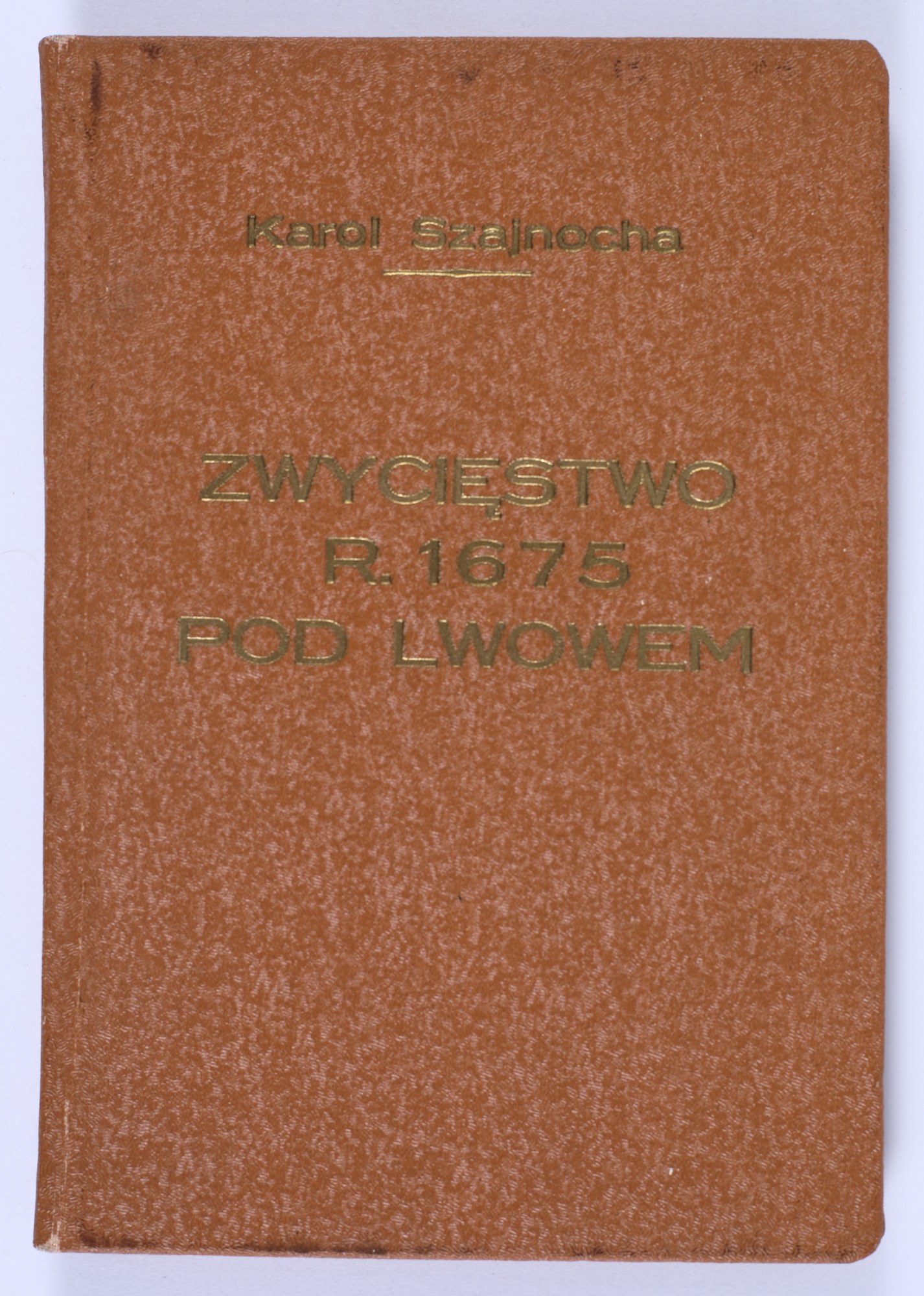 SZAJNOCHA Karol - Zwycięstwo r. 1675 pode Lwowem. Warszawa 1909 [współoprawne z:] SZAJNOCHA Karol - Zwycięstwo r. 1675 pode Lwowem. Warszawa 1925. Wydanie drugie. S. 21; 21. Wys. 18 cm. Oprawa płóc. na licu złoc. tytulat. Ekslibris. Zach. oryg. okł brosz.