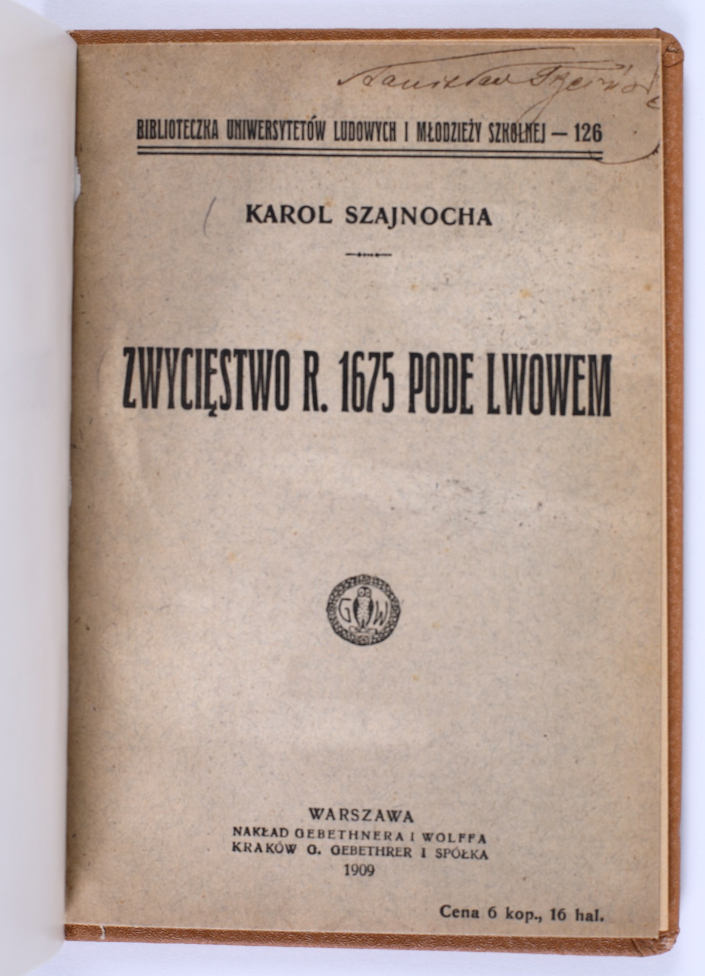 SZAJNOCHA Karol - Zwycięstwo r. 1675 pode Lwowem. Warszawa 1909.