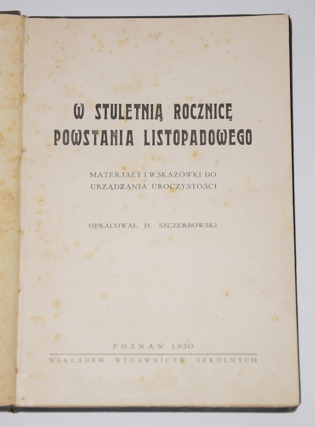 Tytuł: W stuletnią rocznicę powstania listopadowego. Materjały i wskazówki do urządzania uroczystości. Opracował ...