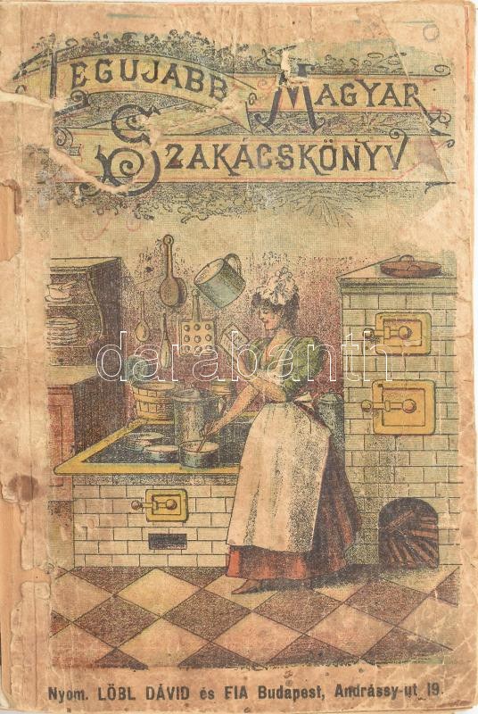 Szepessy Piroska: Legujabb polgári szakácskönyv. Összeáll. - - Bp., 1902, Löbl Dávid és Fia, 29+1 p. Kiadói papírkötés, javított, pótolt borítóval (a hátsó borító teljesen pótolt) és címlappal, foltos lapokkal. Rendkívül ritka