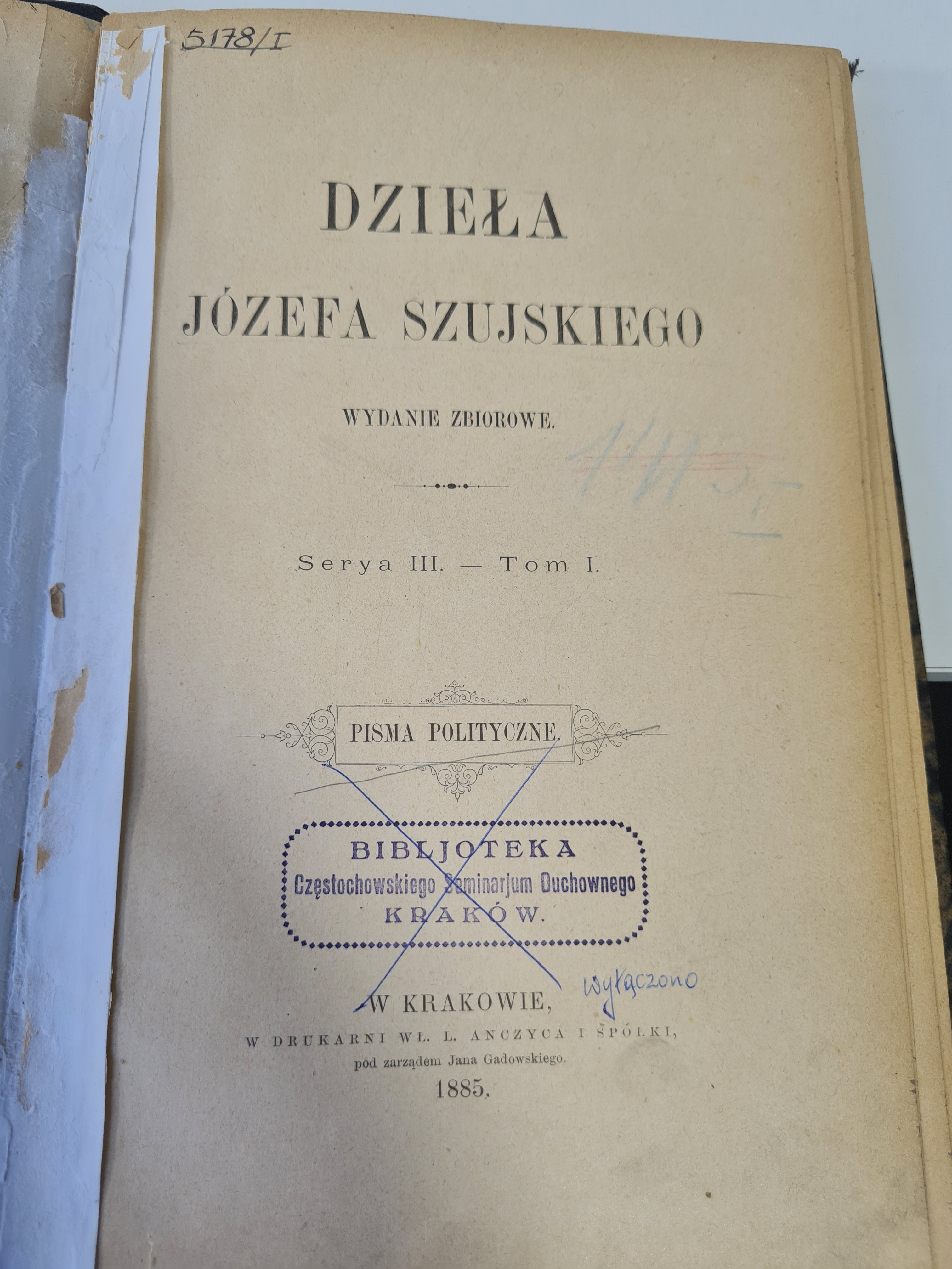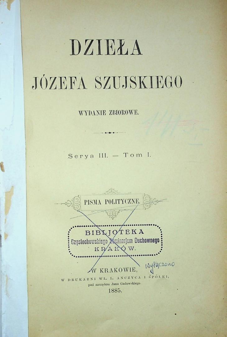 SZUJSKI Józef - DZIEŁA Serya III. - Tom I. PISMA POLITYCZNE.
