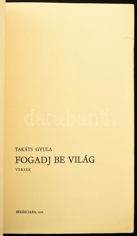 Takáts Gyula: Fogadj be világ. Versek. A költő rajzaival illusztrált. Békéscsaba, 1983., Megyei Könyvtár, 5 sztl. lev...