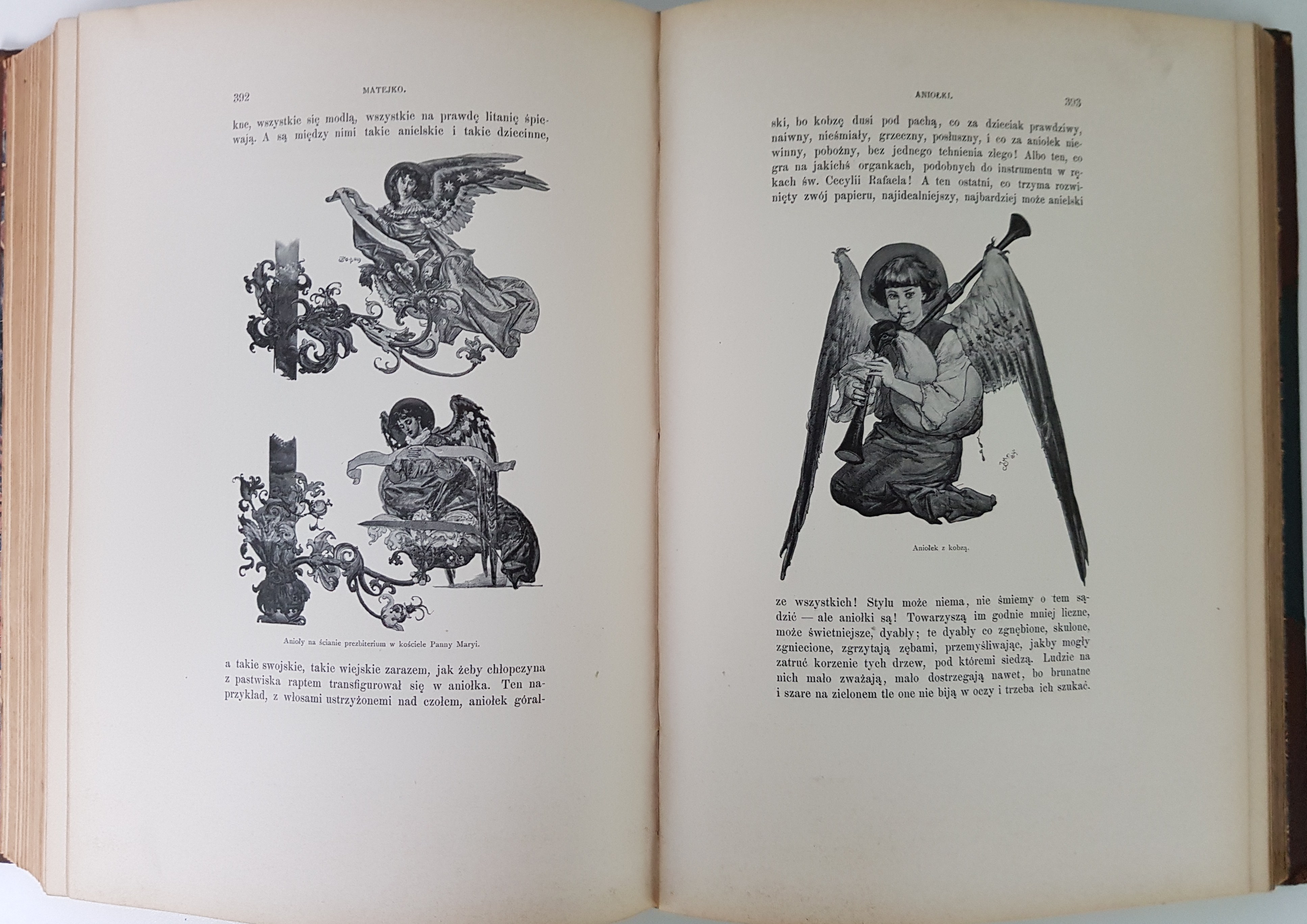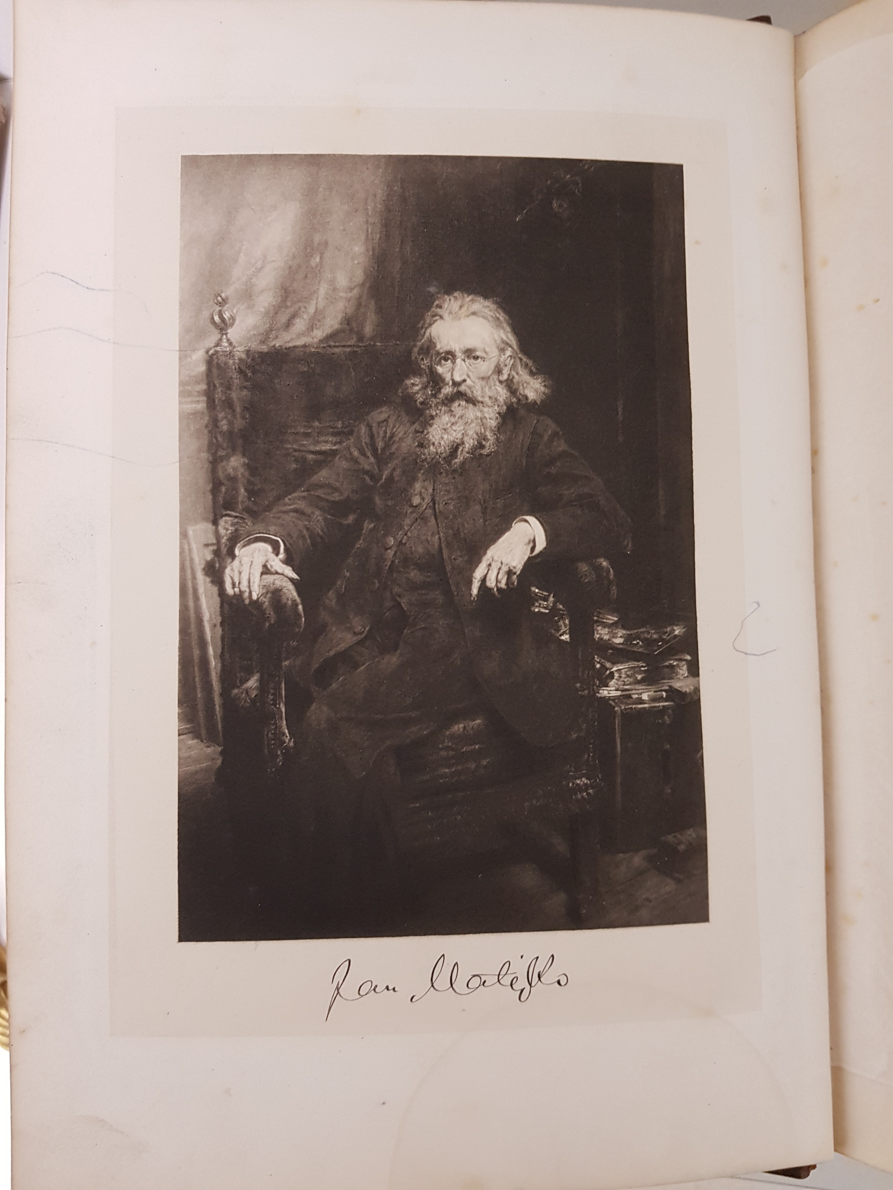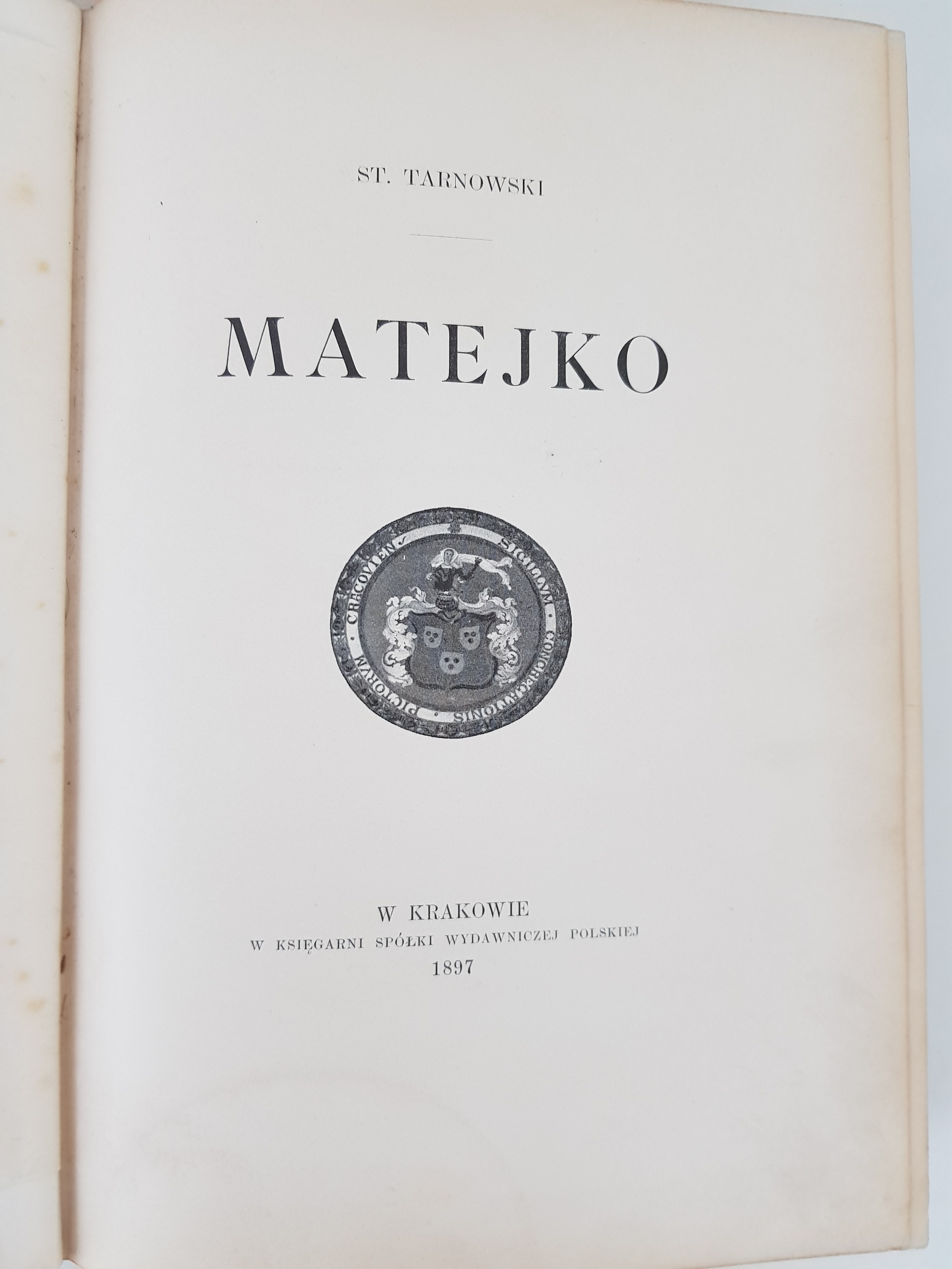 Kraków 1897. W Księg. Spółki Wydawniczej Polskiej. Egzemplarz Władysława Łuszczkiewicza z odręczną dedykacją Autora. Wym.28,2x21cm; stron 562. 4, s. [4], 562, 1 heliograwiura (portret Matejki), 22 tabl. z ilustracjami (w tym 12 skład.), ilustracje w tekście, okł. brosz. zachow., opr. psk. introligat. z epoki. Oprawa introligatorska: brązowy półskórek, złoc. napisy na grzbiecie, narożniki w skórze, wyklejki ozdobne(otarcia, przybrudzenia, zarysowania), niew. ślad zalania portretu i k. tyt., blok książki nieco poluźniony. Wklejony papierowy Exlibris na wyklejce. Stan dobry.