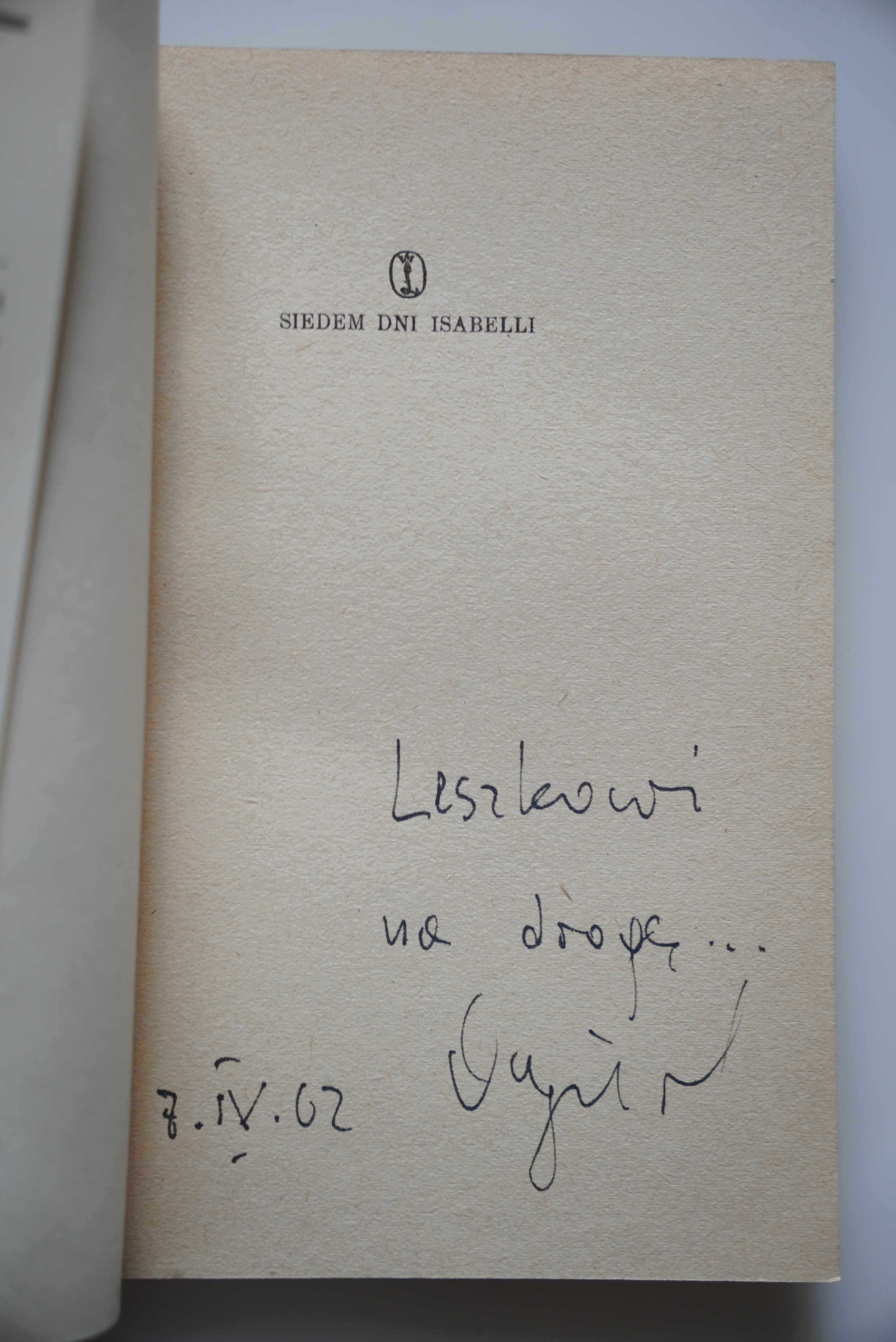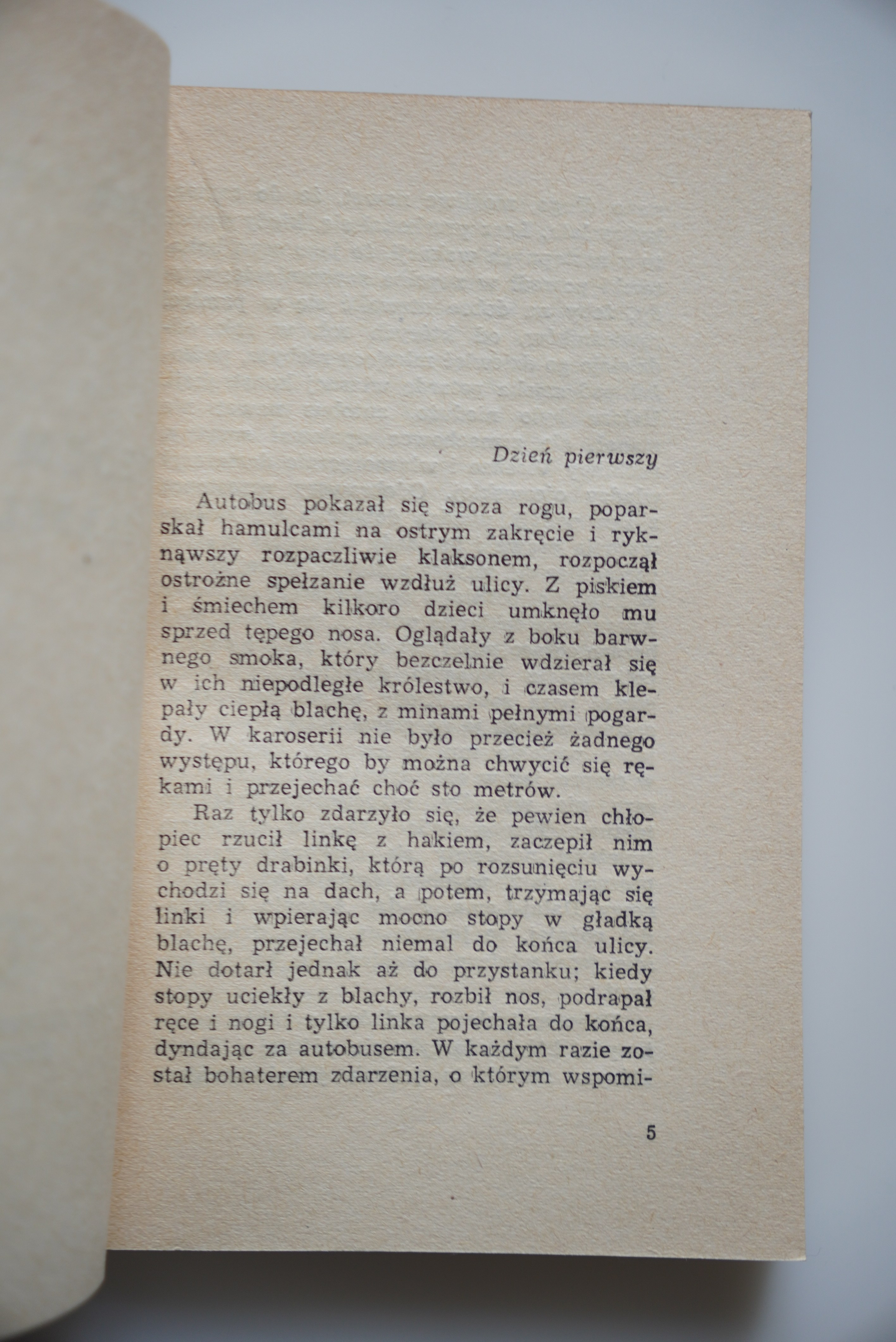KRAKÓW 1962, WYDAWNICTWO LITERACKIE, s. 136, wym. 11 x 17, oprawa miękka, obwoluta ze skrzydełkami, nieznaczne przetarcia i wypłowienie obwoluty, okładkę projektowała Natalia Mąciwoda. na stronie przedtytułowej dedykacja Autora z roku 1962.