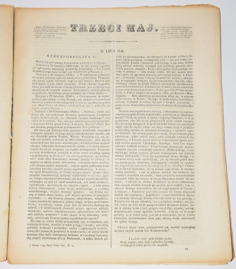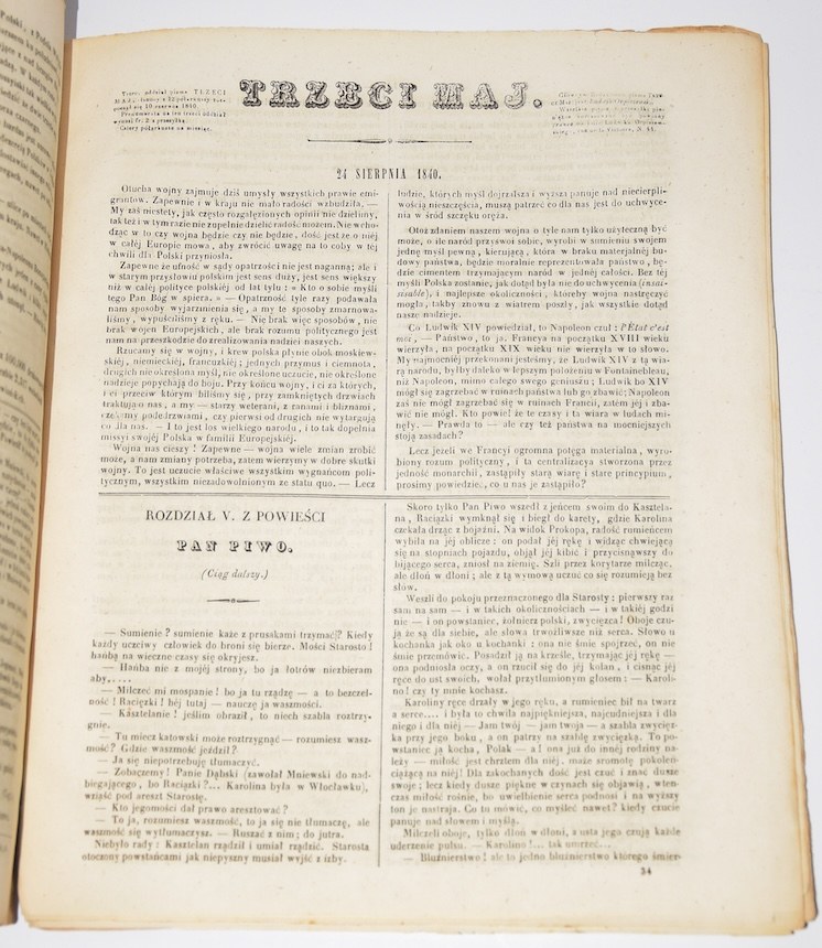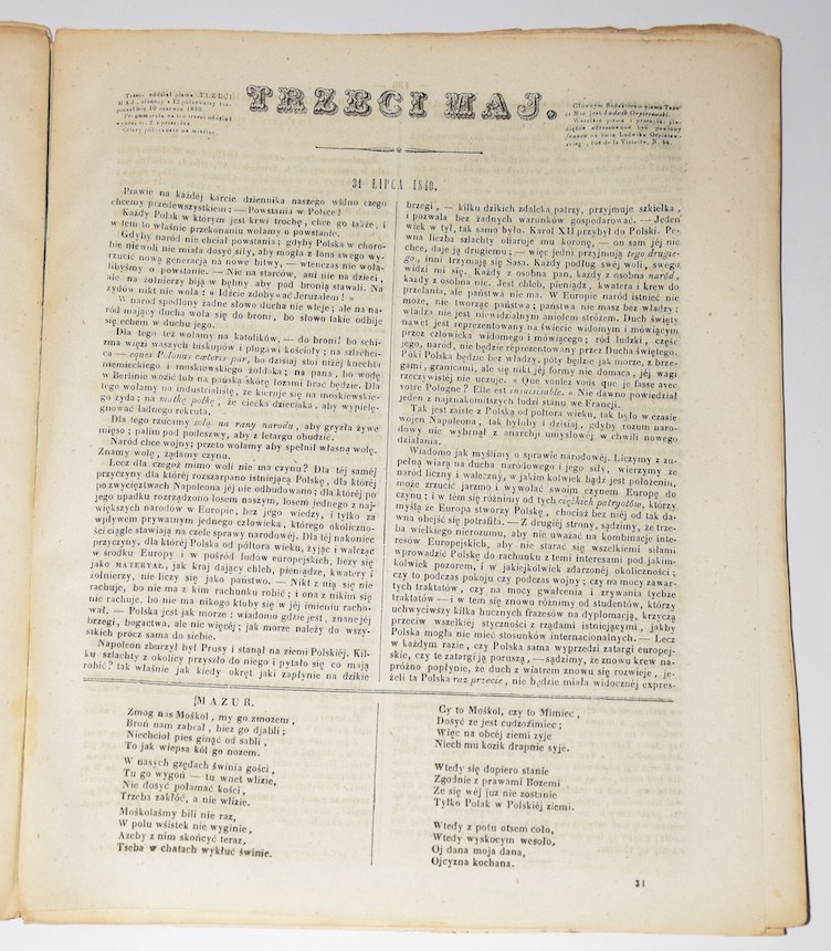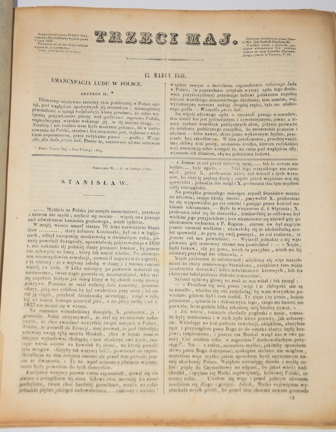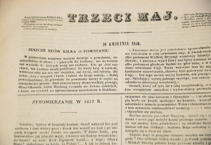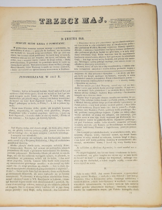 Trzeci maj. Rocznik 1840 (30 numerów). Paryż. Pismo związane z obozem Czartoryskich.