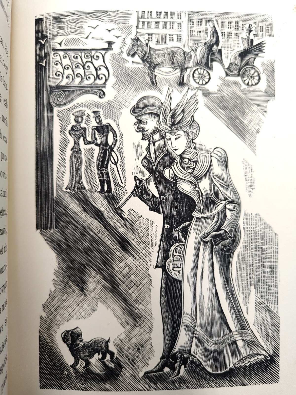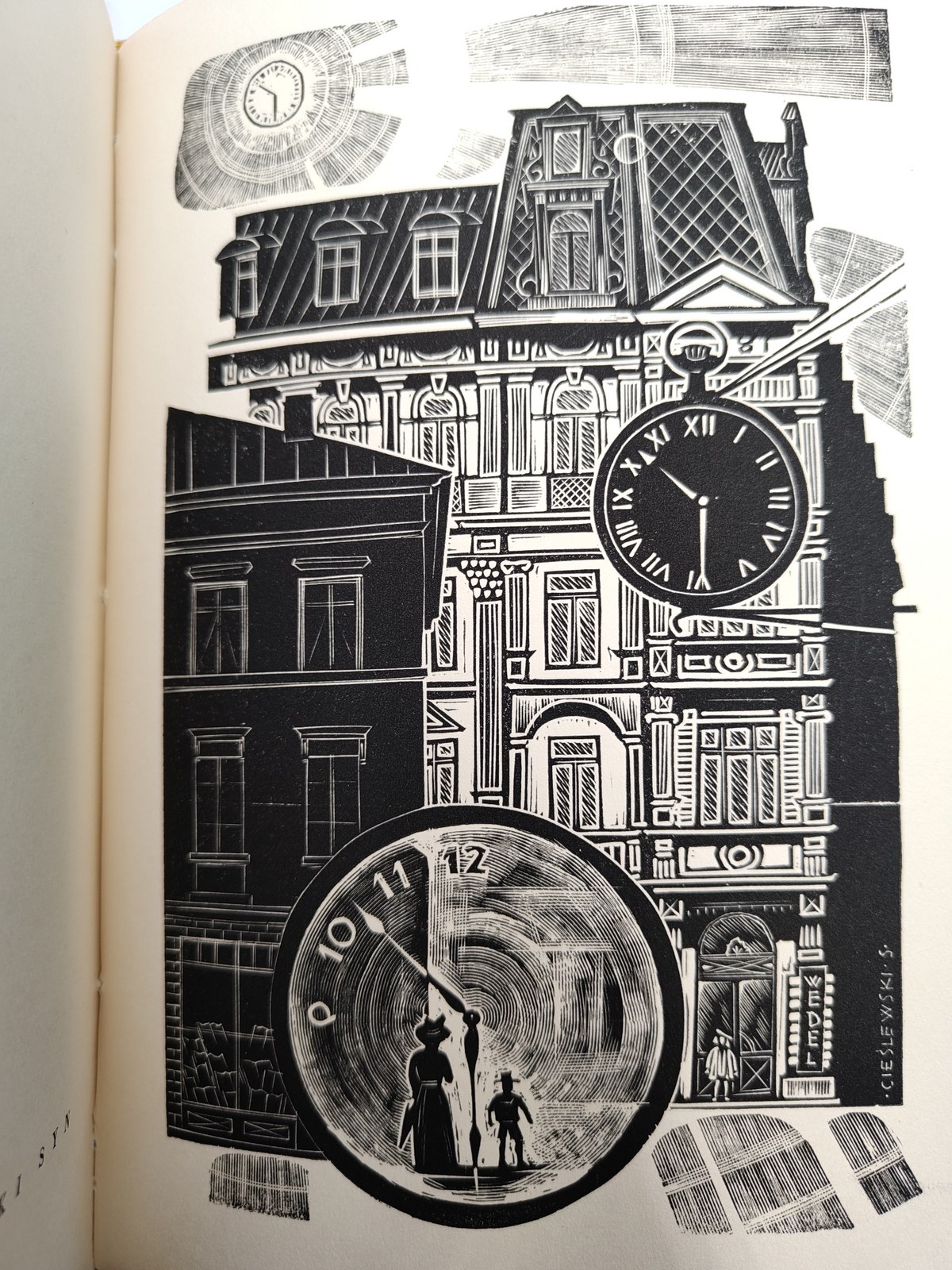 Sygnet na okładce zaprojektował Antoni Wajwód, kartę tytułową zaś Edward Manteuffel. Komplet 10 drzeworytów odbito z oryginalnych klocków.*