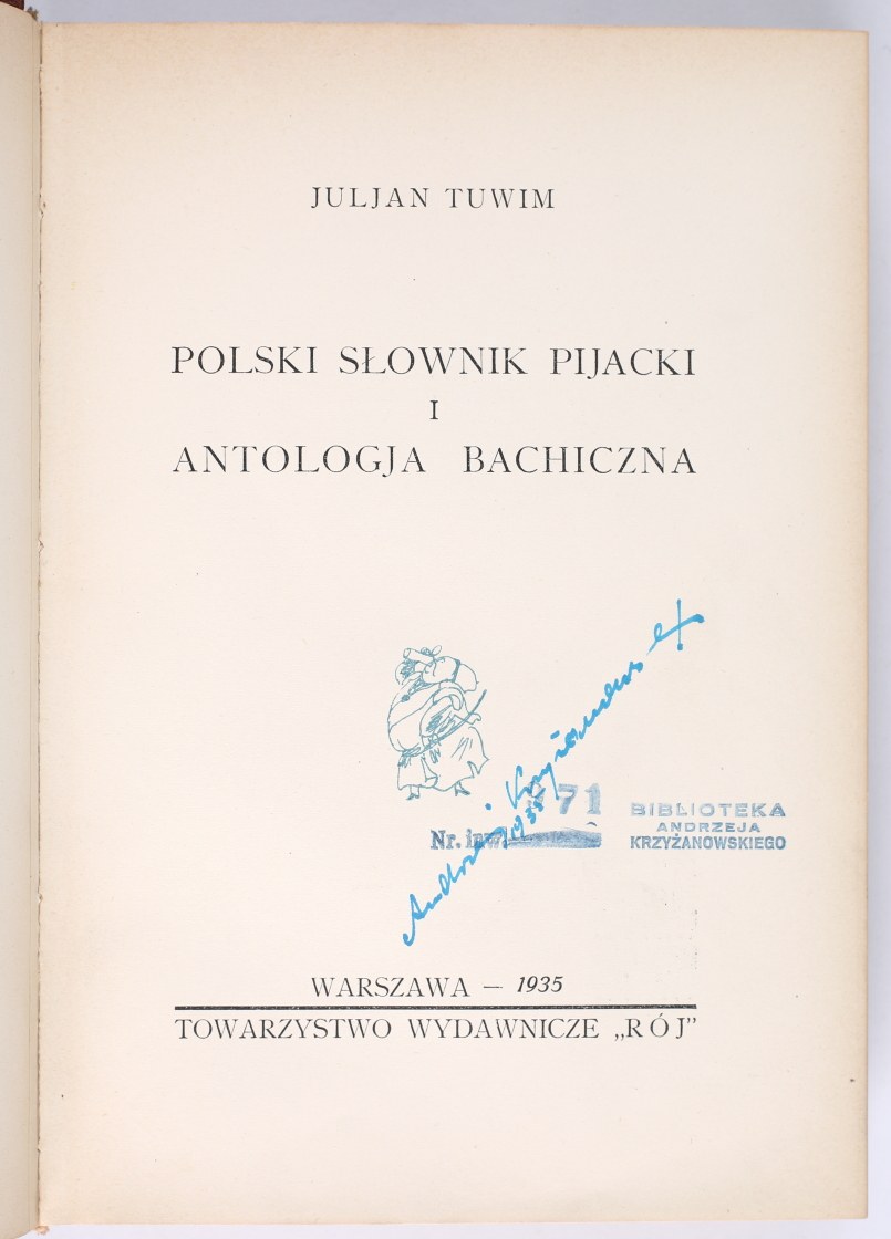 TUWIM Juljan - Polski Słownik Pijacki i Antologia Bachiczna. Warszawa 1935. Towarzystwo Wydawnicze "Rój". Ilustrował Feliks Topolski.