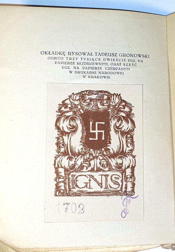 Na wydawniczym ekslibrisie wybity numer 1702 (z nakładu 3200 + 6 na papierze czerpanym) wraz z odręcznie wpisanymi inicjałami Autora!