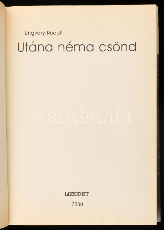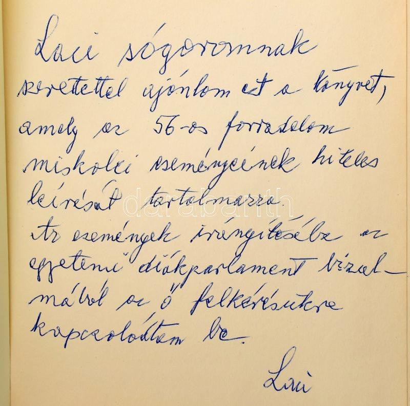 Ungváry Rudolf: Utána néma csönd. A miskolci egyetem 1956-os diákparlamentjének története. Bp., 2000, Logod Bt., 248 p. Második kiadás. Kiadói kartonált papírkötés. Fekete László, aki a Miskolci Egyetem adjunktusaként a könyvben leírt események egyik szereplője volt 1956-ban (az '56-os események utáni per másodrendű vádlottja), által DEDIKÁLT példány; az előzéklapon személyes hangvételű soraival, illetve egy külön lapon saját kezű jegyzeteivel arról, hogy a könyvben hol találhatóak a róla szóló szövegrészletek (ezek az adott oldalakon belül is jelölve) + Fekete Lászlót és családját ábrázoló fotó.