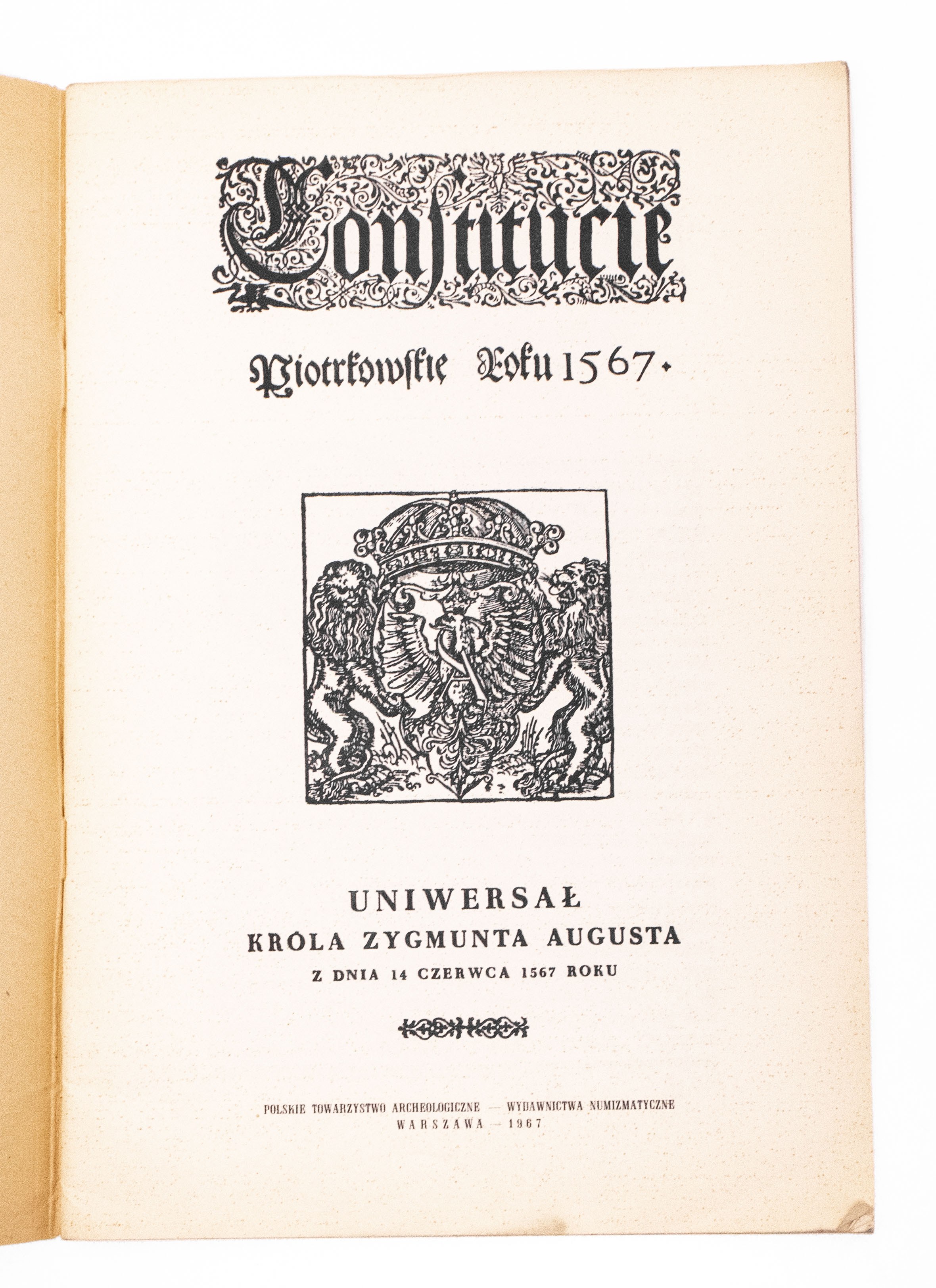 Reedycja uznawanego za pierwsze polskie dzieło numizmatyczne Uniwersału Zygmunta II Augusta, wydana z okazji jego 400-lecia z inicjatywy Polskiego Towarzystwa Archeologicznego. Uniwersał określał kurs i wartość talarów występujących wówczas w Polsce.