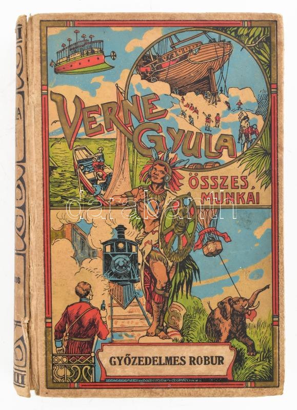 Verne Gyula: Győzedelmes Robur. Ford.: Kövér Ilma. Geiger Richár rajzaival. Verne Gyula munkái. Bp., é.n. (cca 1910), Magyar Kereskedelmi Közlöny, 190+(2) p. Oldalszámozáson belül egészoldalas illusztrációkkal. Kiadói kartonált papírkötés, sérült gerinccel, belül nagyrészt jó állapotban.