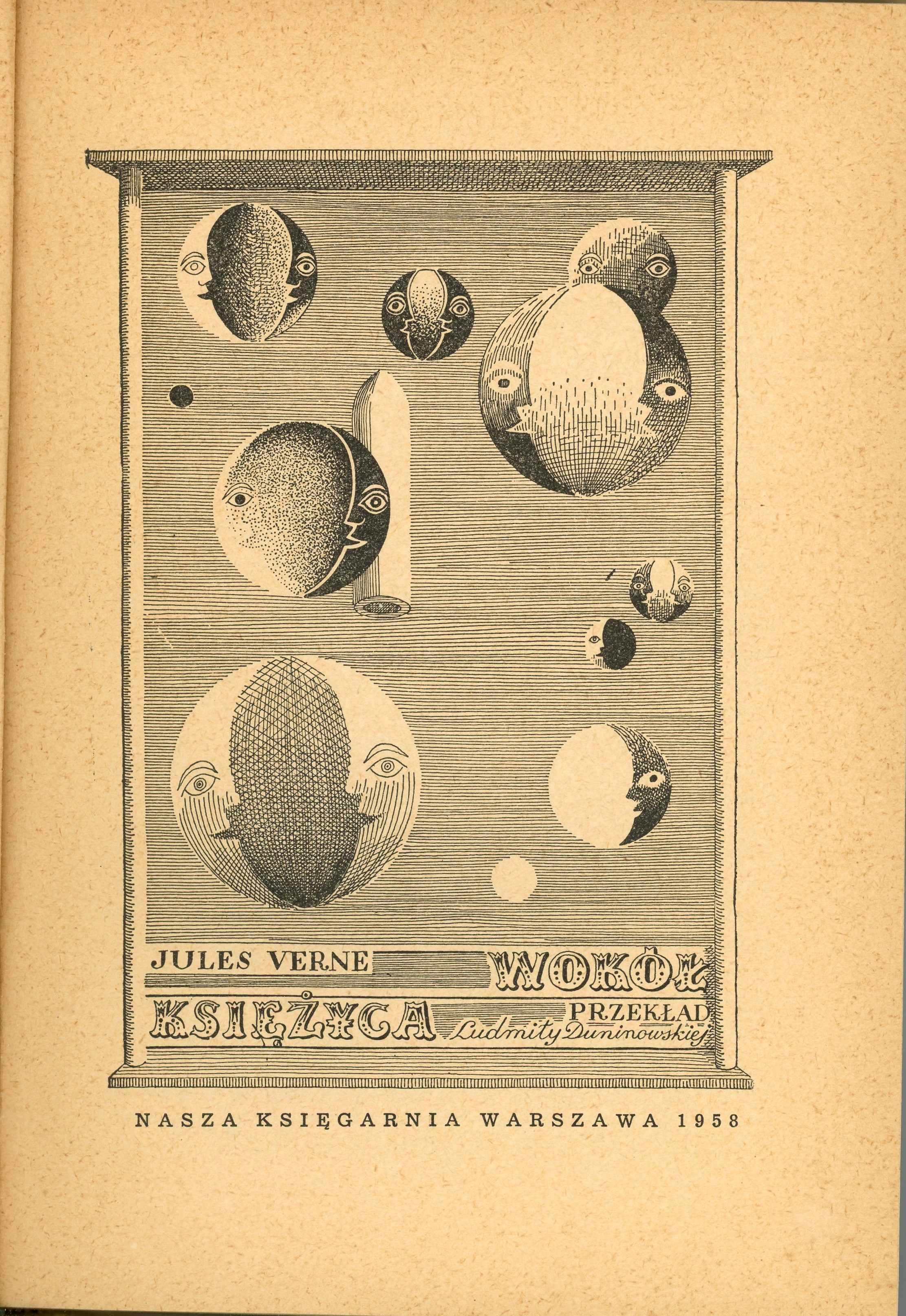 Verne Jules - Wokół Księżyca. Przekład Ludmiły Duninowskiej. Ilustrował Daniel Mróz. Warszawa 1958 Nasza Księgarnia.