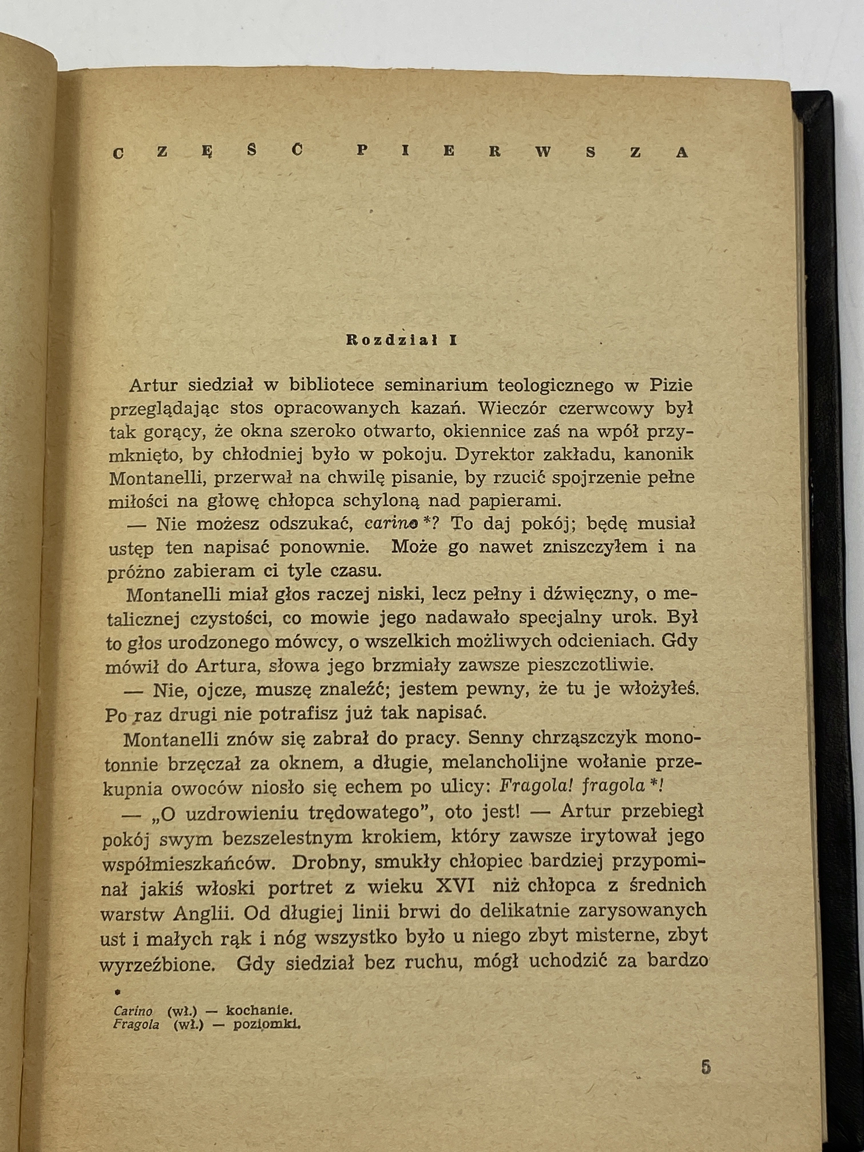 Voynich Ethel Lilian, Szerszeń: [powieść], Warszawa: "Iskry", 1956, s. 282, [2], [8] k. tabl.: il., wymiary 16 x 21,5 cm. Niewielki podpis własnościowy. Przeł. Maria Kreczowska; il. Mieczysław Majewski. Okładka skórzana inspirowana obwolutą wg projektu Jana Młodożeńca wykonana ręcznie w pracowni Suszek Books.