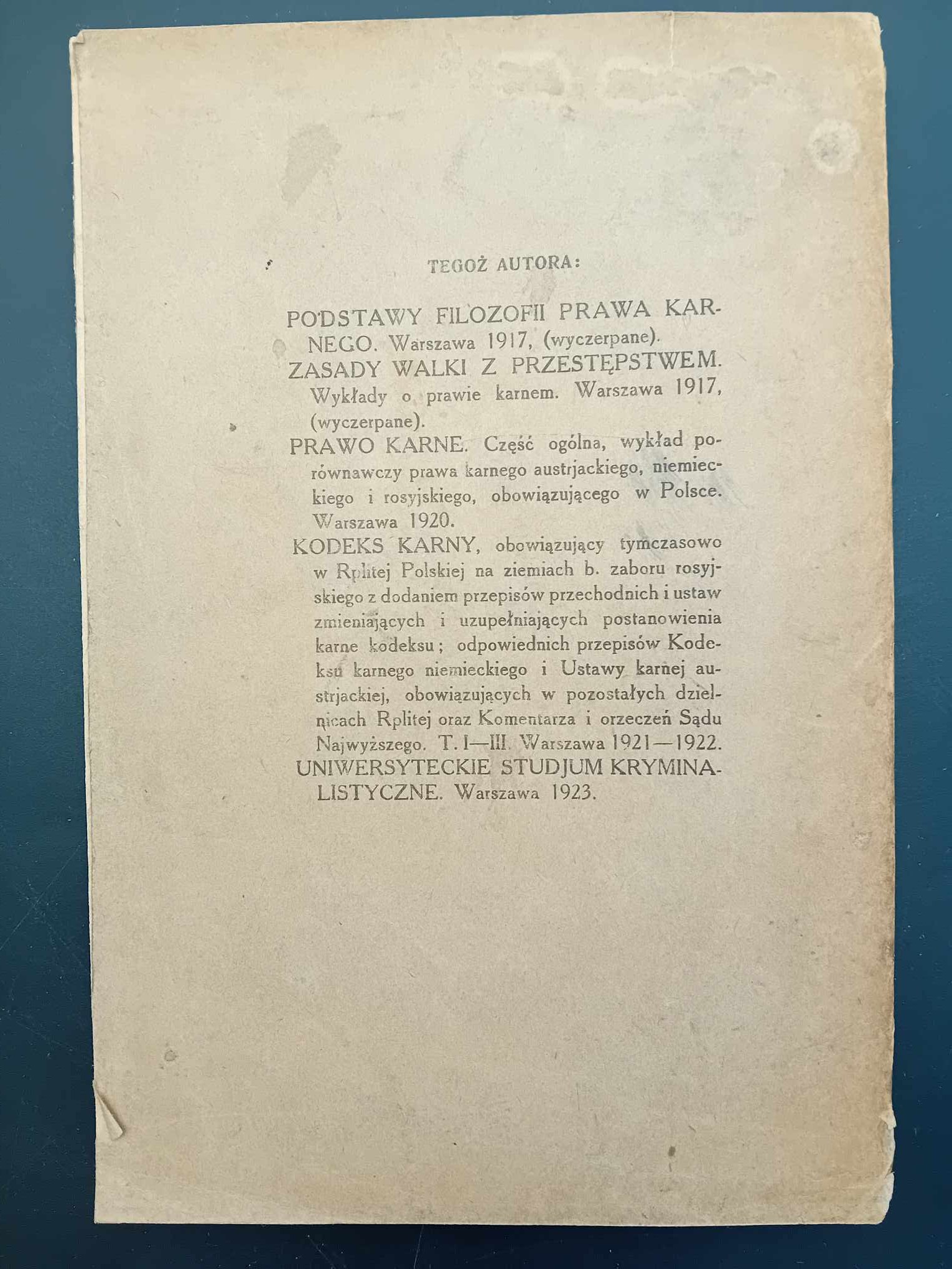 Wykład porównawczy prawa karnego austrjackiego, niemieckiego i rosyjskiego obowiązującego w Polsce