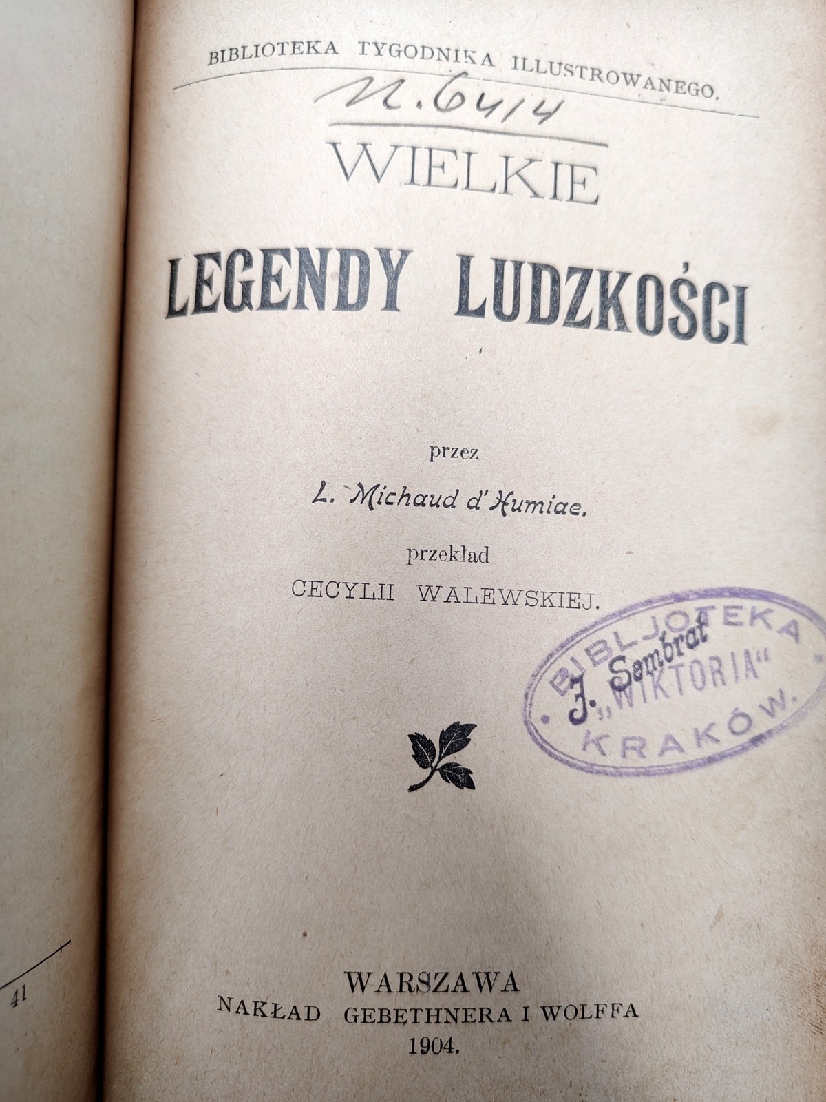 Walewska Cecylia ( przekład) - Wielkie legendy ludzkości - Warszawa 1904