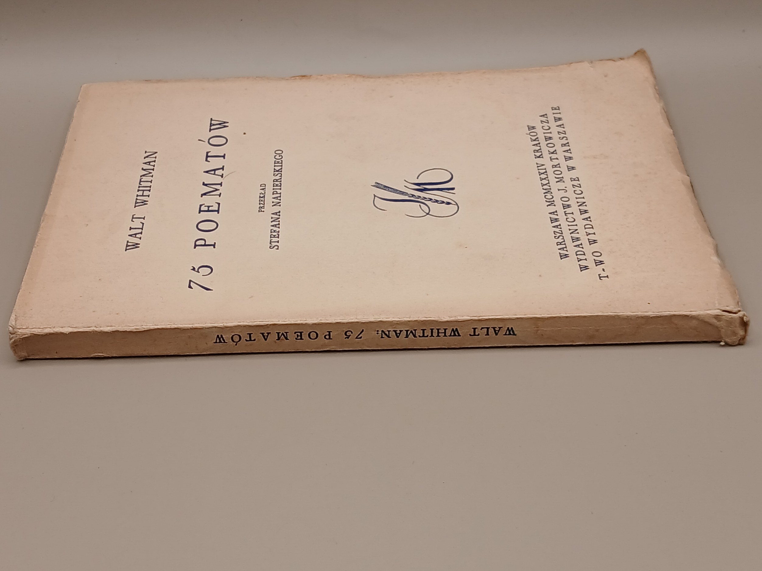 Walt Whitman. 75 POEMATÓW. Przekład Stefana Napierskiego. Warszawa - Kraków 1934, Wydawnictwo J. Mortkowicza Towarzystwo Wydawnicze. s.152, [4]