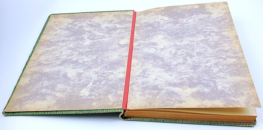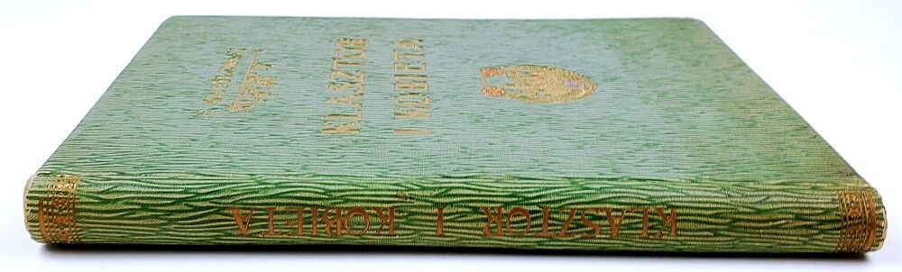 TWARDA OPRAWA PŁÓCIENNA OZDOBNA Z EPOKI. PŁÓTNO BARWIONE CIEKAWYM MOTYWEM. ZŁOCENIA NA LICU I GRZBIECIE. DODATKOWO PODMALOWANE ZŁOCENIA NA LICU. OZODBNE WYKLEJKI.