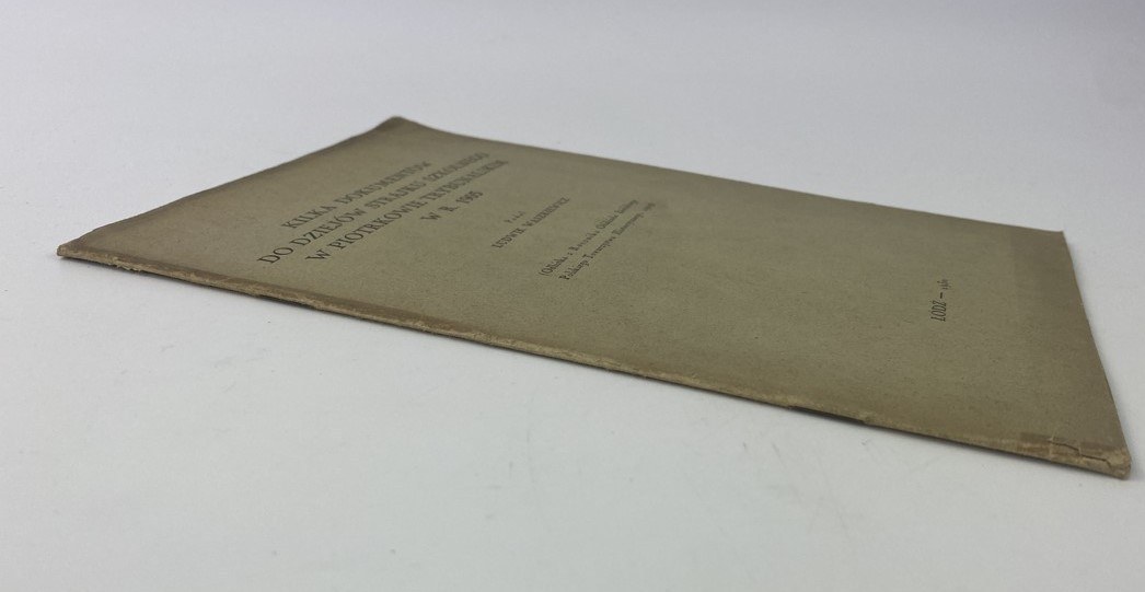 Waszkiewicz Ludwik, Kilka dokumentów do dziejów strajku szkolnego w Piotrkowie Trybunalskim w r. 1905, Łódź: [s.n.], 1930, s. 14, [1], wymiary 15,5 x 23,5 cm. Okładka broszurowa, wydawnicza. Niewielkie zabrudzenia okładki.
