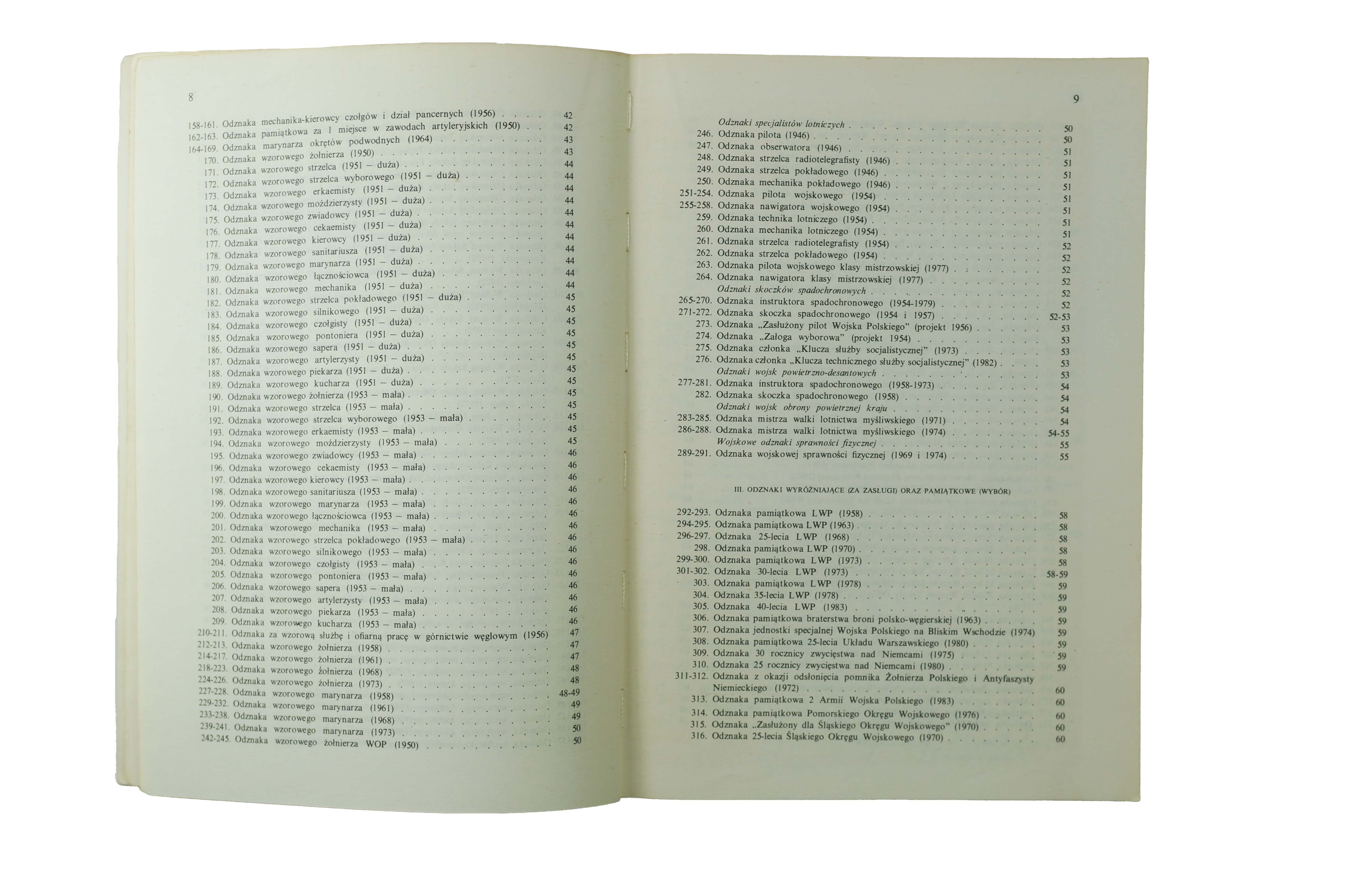 Odznaki i oznaki Ludowego Wojska Polskiego. Katalog - opracował Mieczysław Wełna, Muzeum Sztuki Medalierskiej we Wrocławiu Katalogi Zbiorów. Seria C tom I, Ossolineum 1989, f. 16,5x23,5cm, s. 150