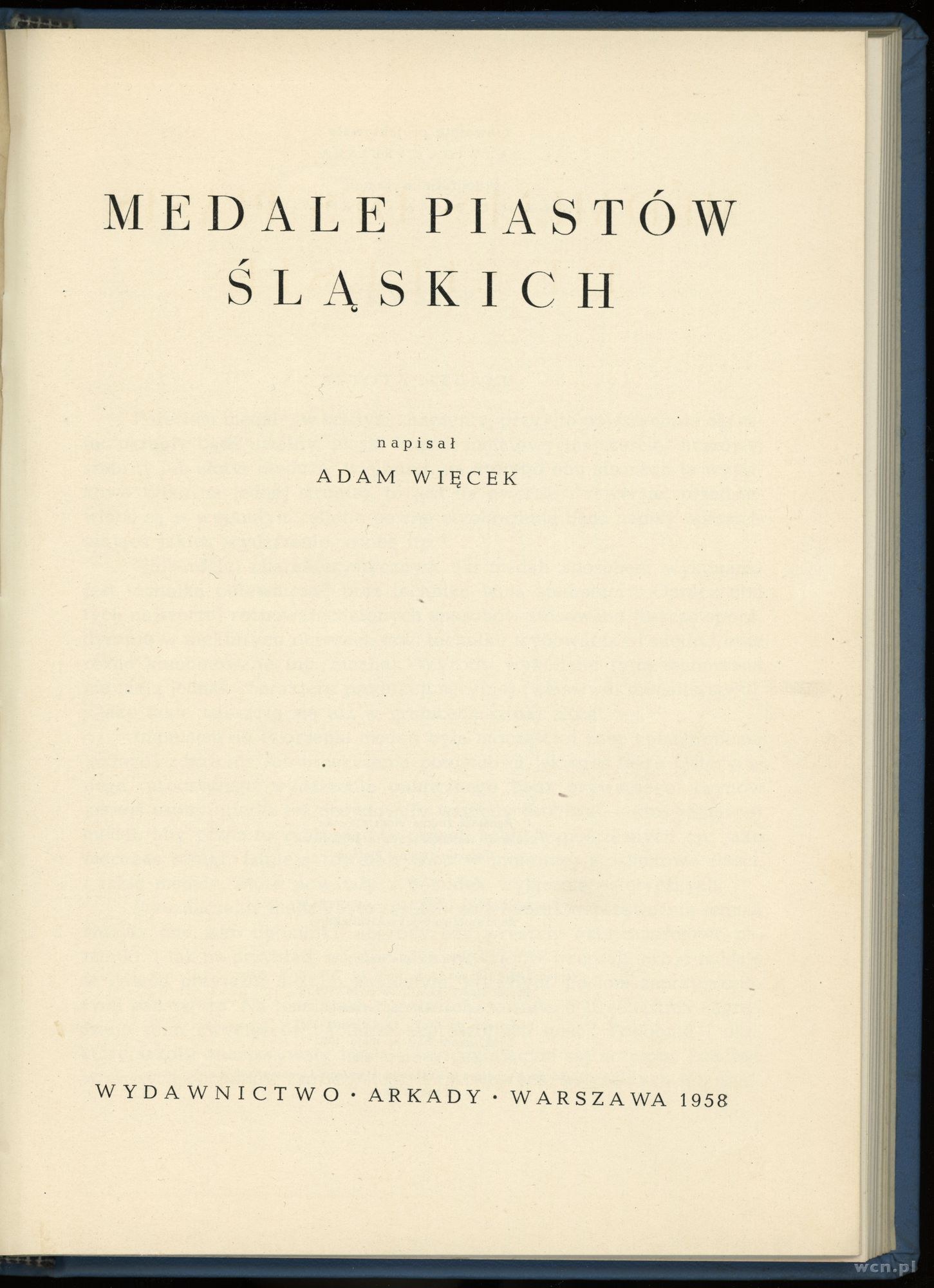 Więcek Adam – Medale Piastów Śląskich, Warszawa 1958