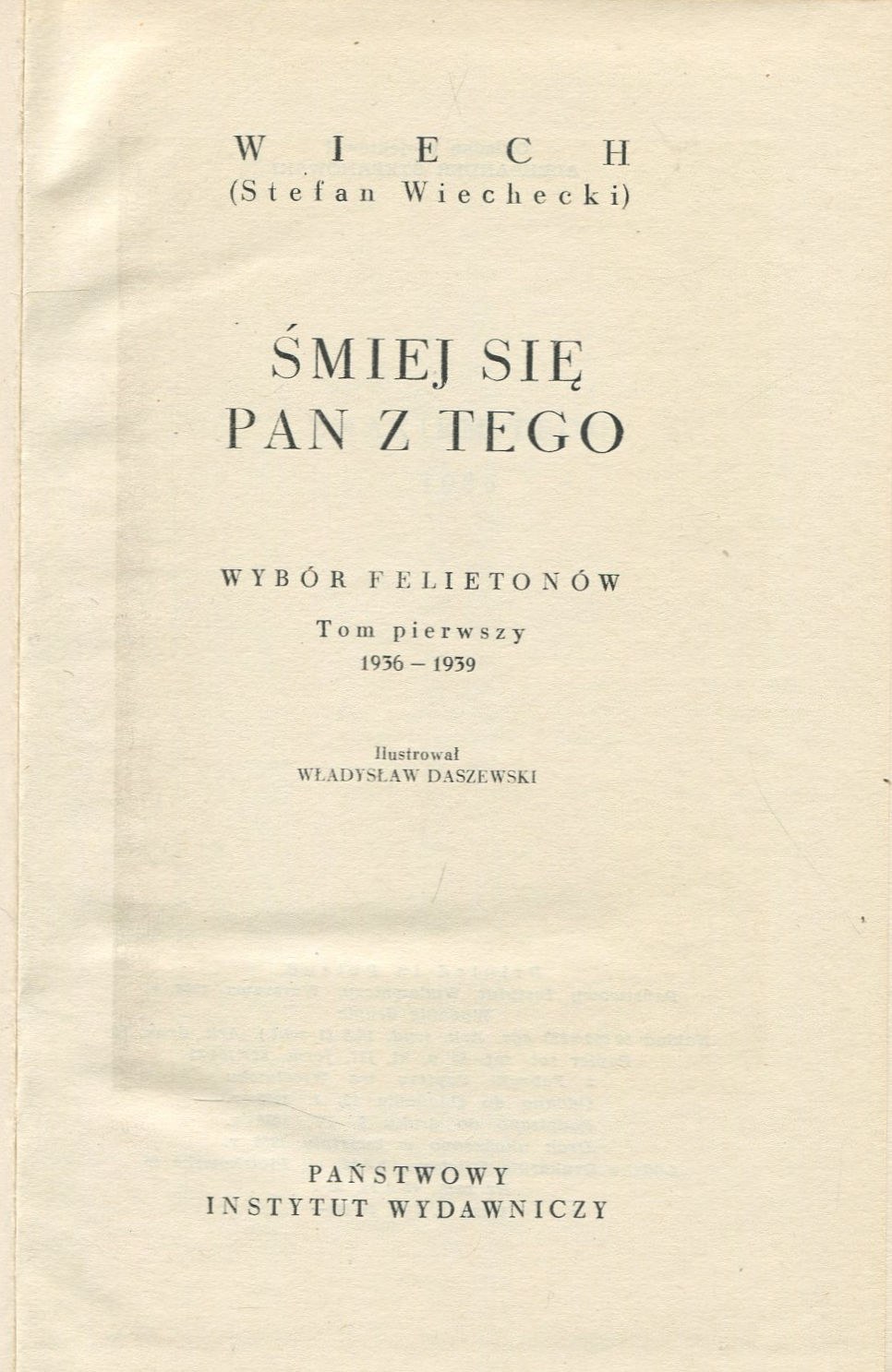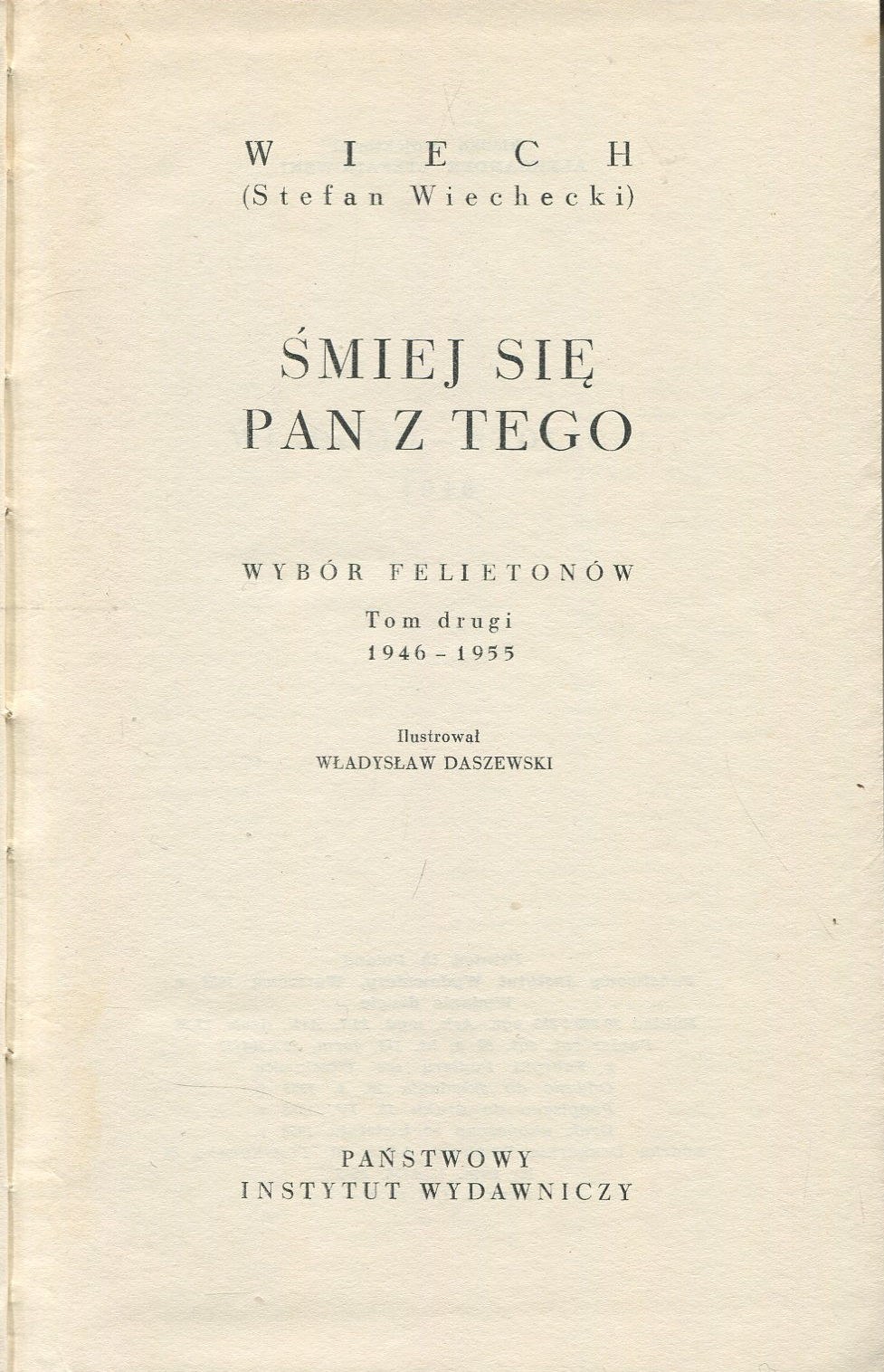 Zbiorowe wydanie tekstów satyrycznych Wiecha, od wczesnych felietonów do tekstów dla Ekspresu Wieczornego czy Przekroju. Wśród felietonów m.in.: Wiadomo- Stolica!, Spacerkiem przez Poniatoszczaka, Spokojna głowa, Szafa gra, Podróż po Warszawie, Znakiem tego, Syrena w sztywniaku. Ilustrował Władysław Daszewski.