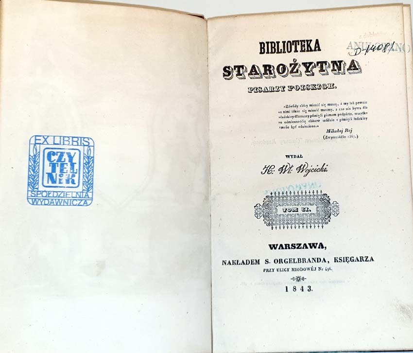 Warszawa 1843r., Nakładem S.Orgelbranda, Księgarza, str. [4], 313, [3], format 13x20,5cm